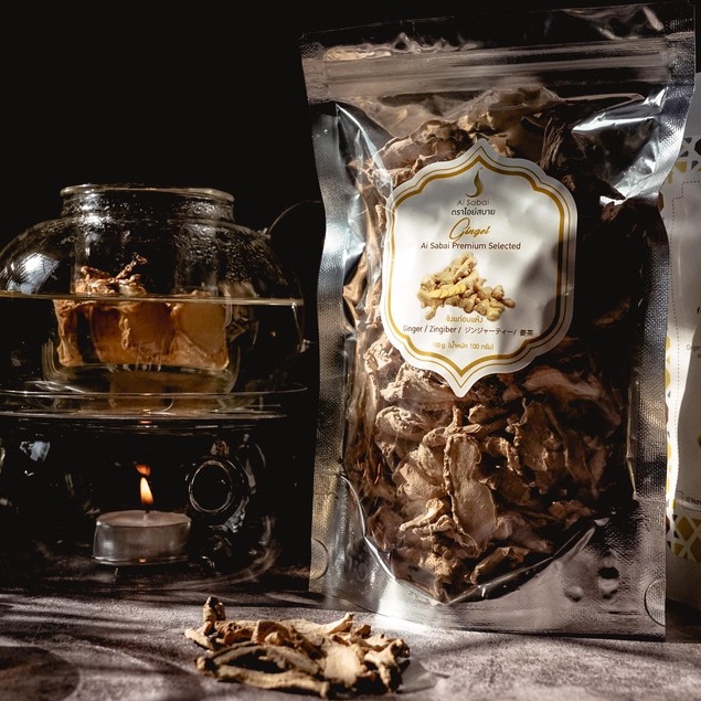 ขิงอบแห้ง 100กรัม ผลิตจากขิงแก่ อายุ12เดือน Ginger Loose Tea100g.