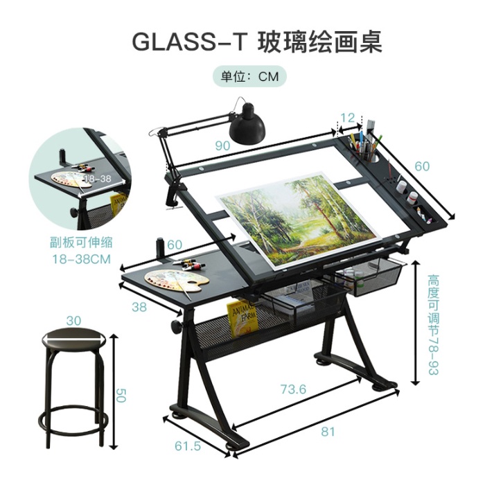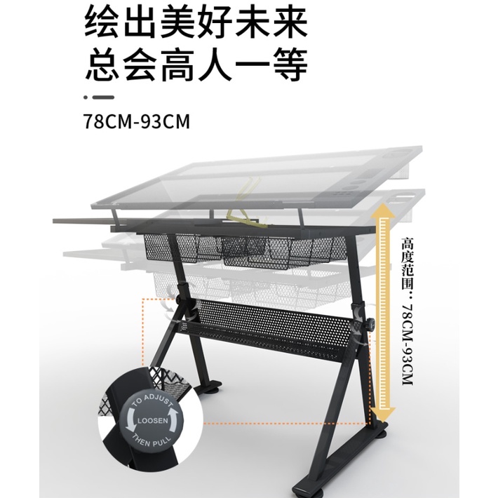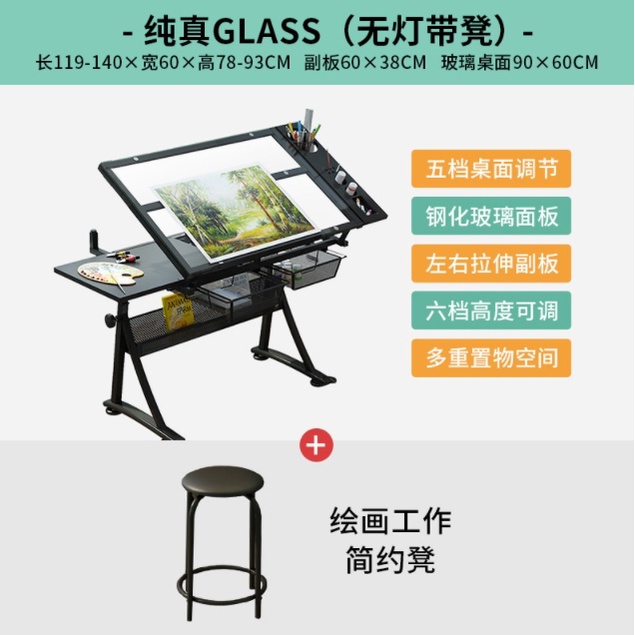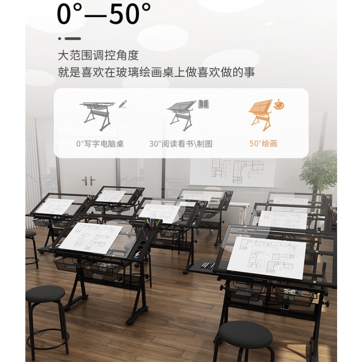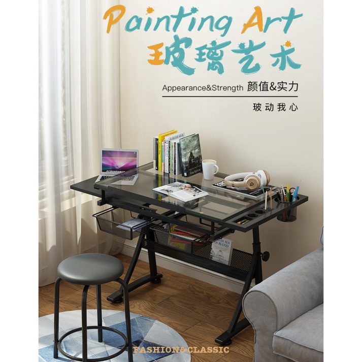 MAO โต๊ะทํางานกระจกวาดรูป เขียนแบบ ปรับระดับความเอียงได้ Tempered Glass Drafting Table Drawing Desk