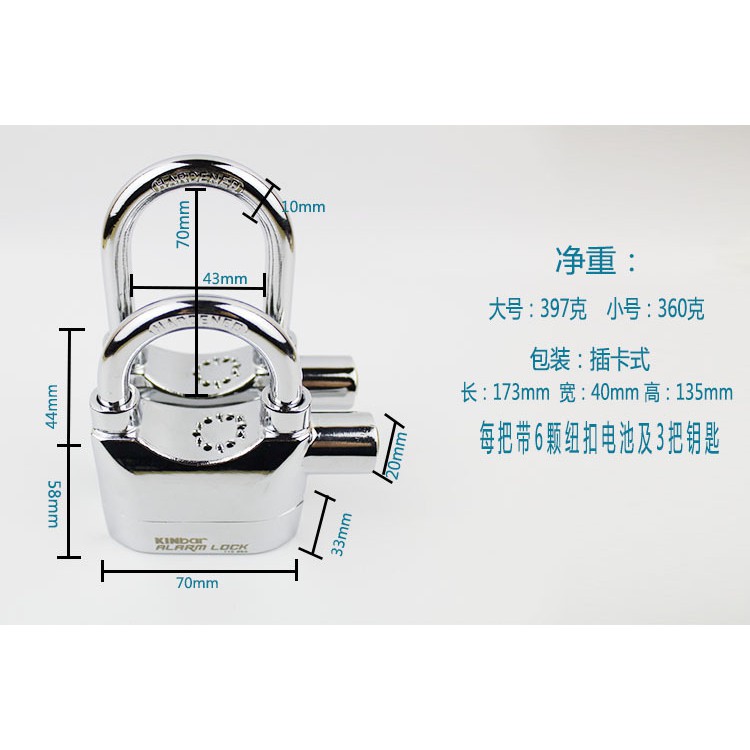 MAO กุญแจกันขโมย เตือนภัย สัญญาณกันขโมย มีเสียงร้องแจ้งเตือน กุญแจล็อคดิสเบรค Alarm Lock 110 dB