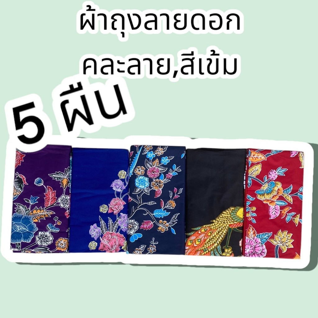 ผ้าถุงสีเข้มลายดอก 5 ผืน โปรลับซื้อ 10 แถม 1 สีเข้มลายดอก