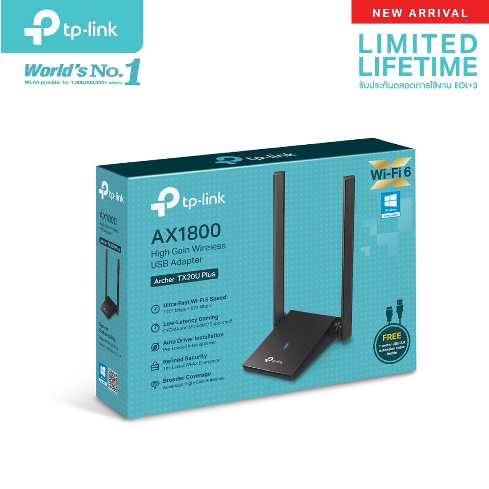 TP-Link Archer TX20U Plus ใหม่!! ไวไฟ 6 ยูเอสบีอแดปเตอร์ AX1800 Dual Antennas High Gain Wireless USB Adapter