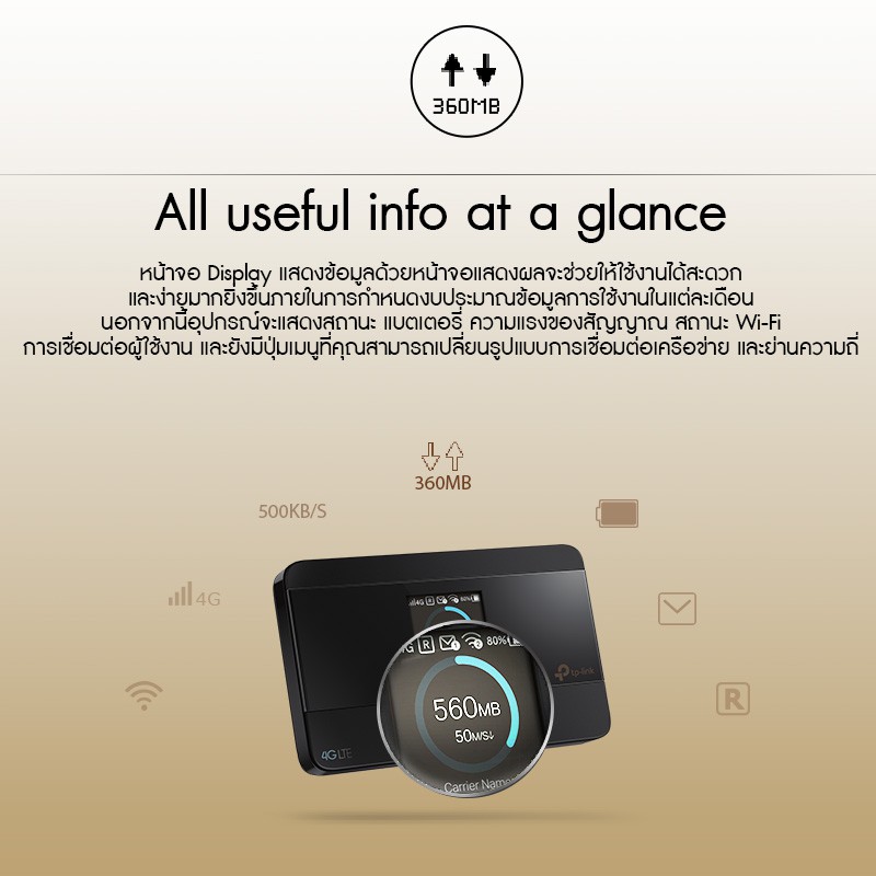 TP-Link M7350 4G Pocket WiFi พกพาไปได้ทุกที่ รองรับ 4G LTE มีหน้าจอ ROUTER Pocket hotspot WiFi