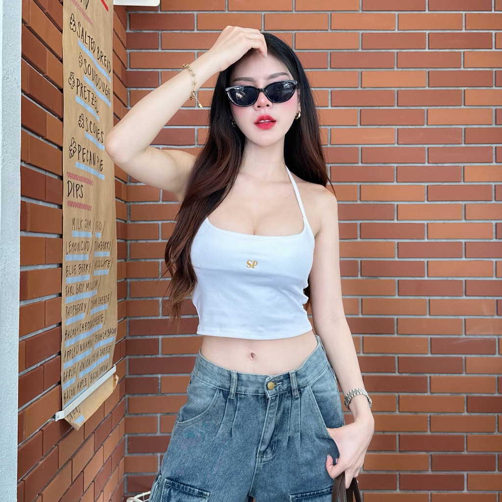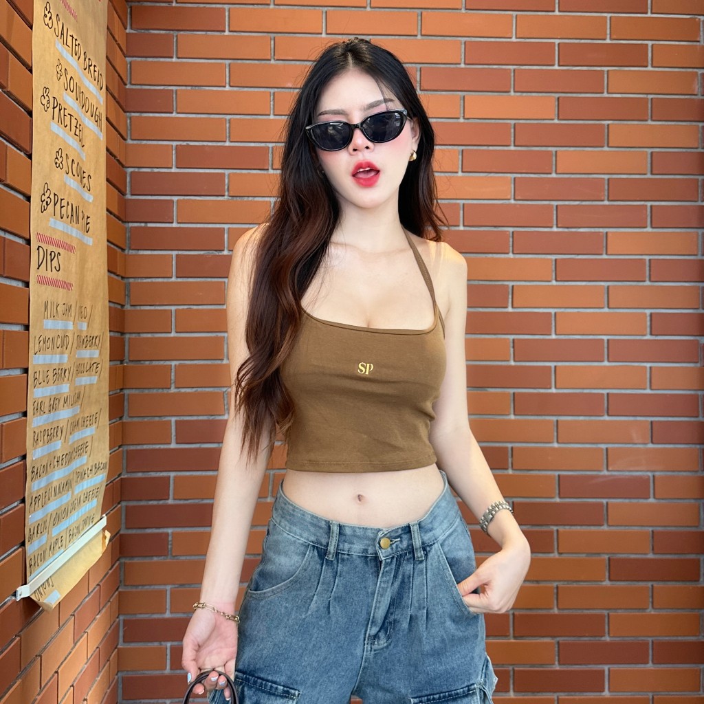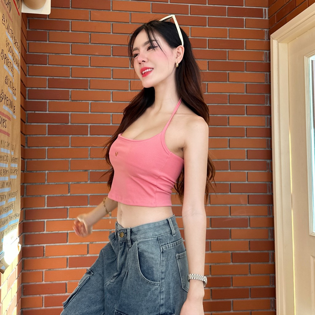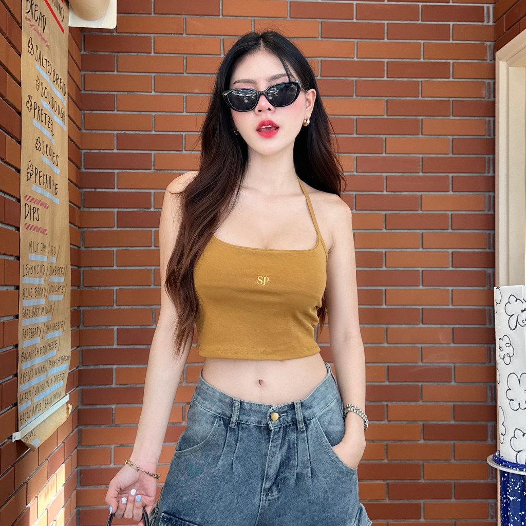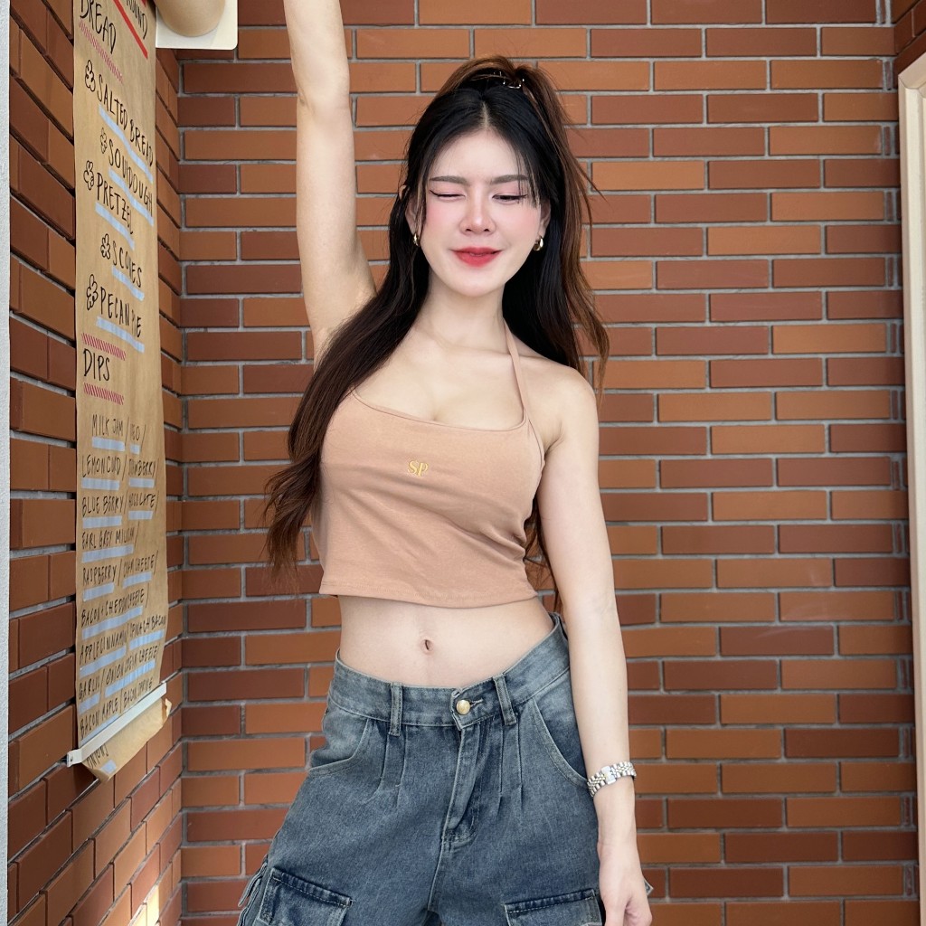 🌈SpinnyHouse🌈เสื้อครอปคล้องคอ ผ้ายืดยูน ิ ปักโลโก้อก 😻 ทรงสวยใส่แล้วพรางหุ่น สาวอวบใส่ได้ พร้อมส่งทุกสี รุ่น คล้องคอปักSP