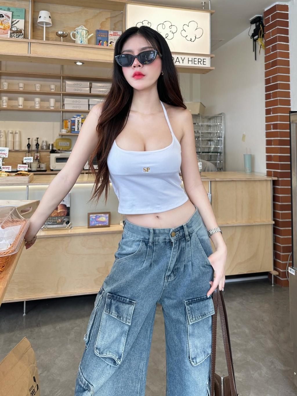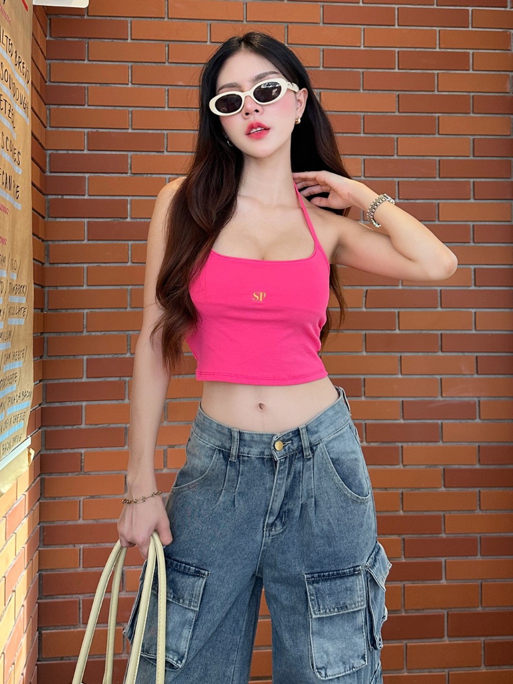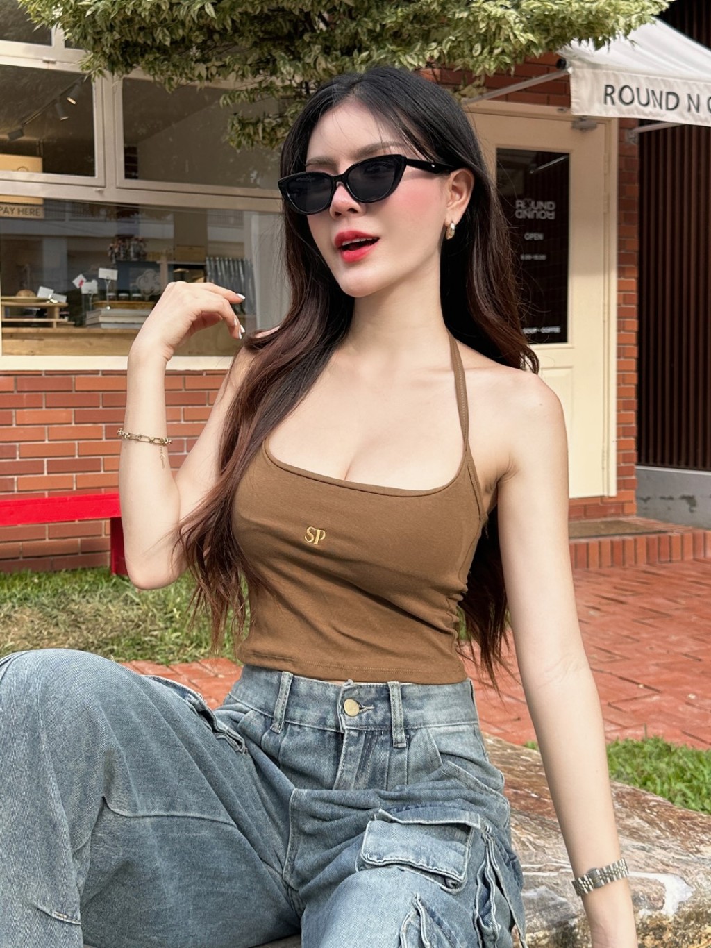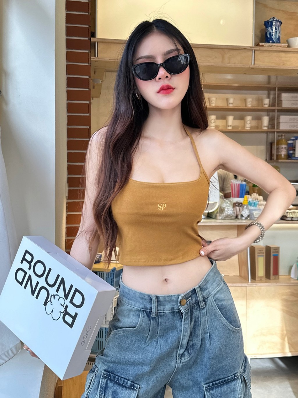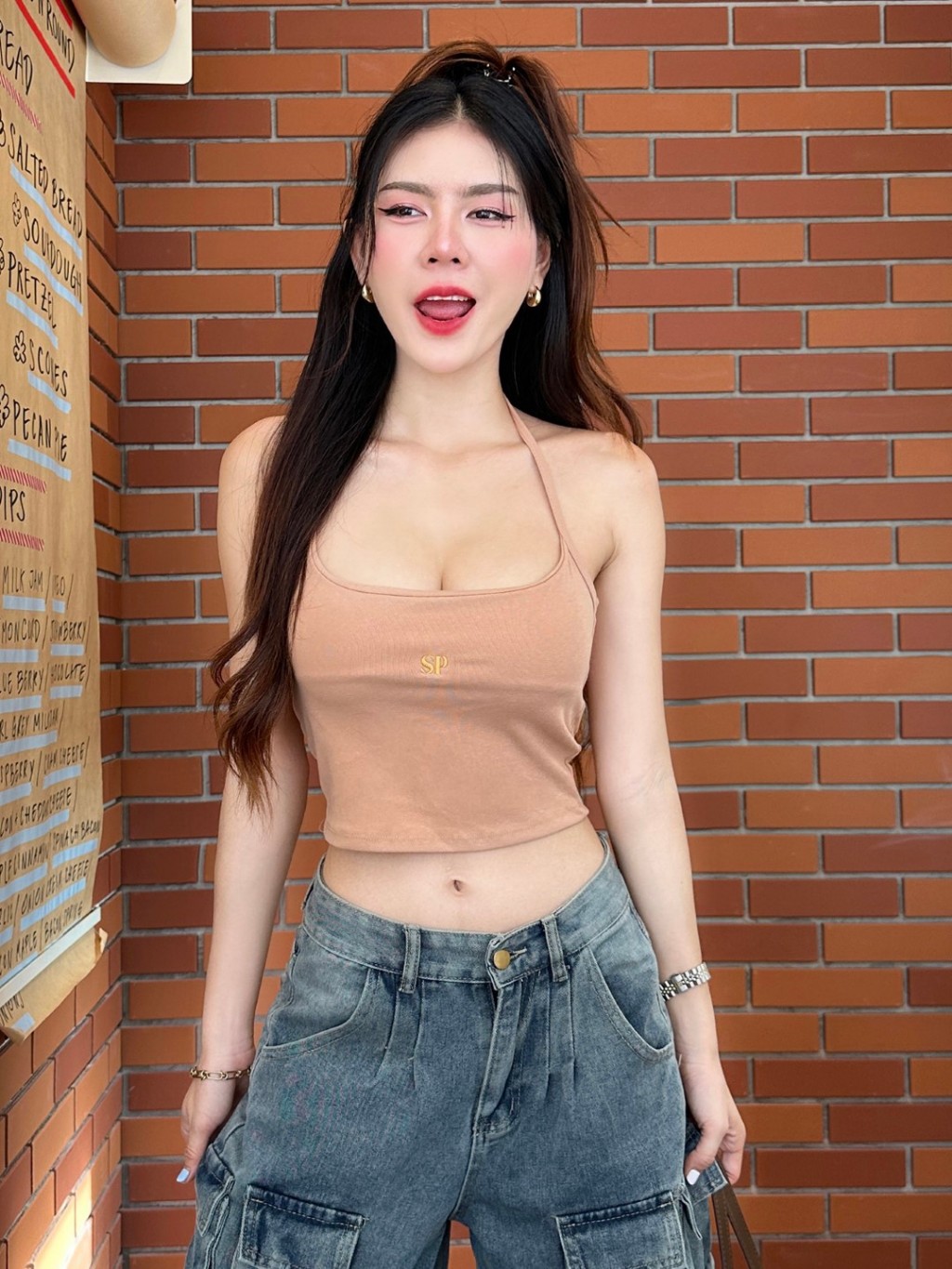 🌈SpinnyHouse🌈เสื้อครอปคล้องคอ ผ้ายืดยูน ิ ปักโลโก้อก 😻 ทรงสวยใส่แล้วพรางหุ่น สาวอวบใส่ได้ พร้อมส่งทุกสี รุ่น คล้องคอปักSP