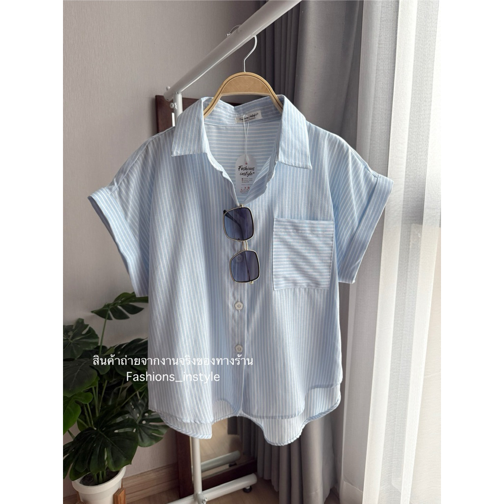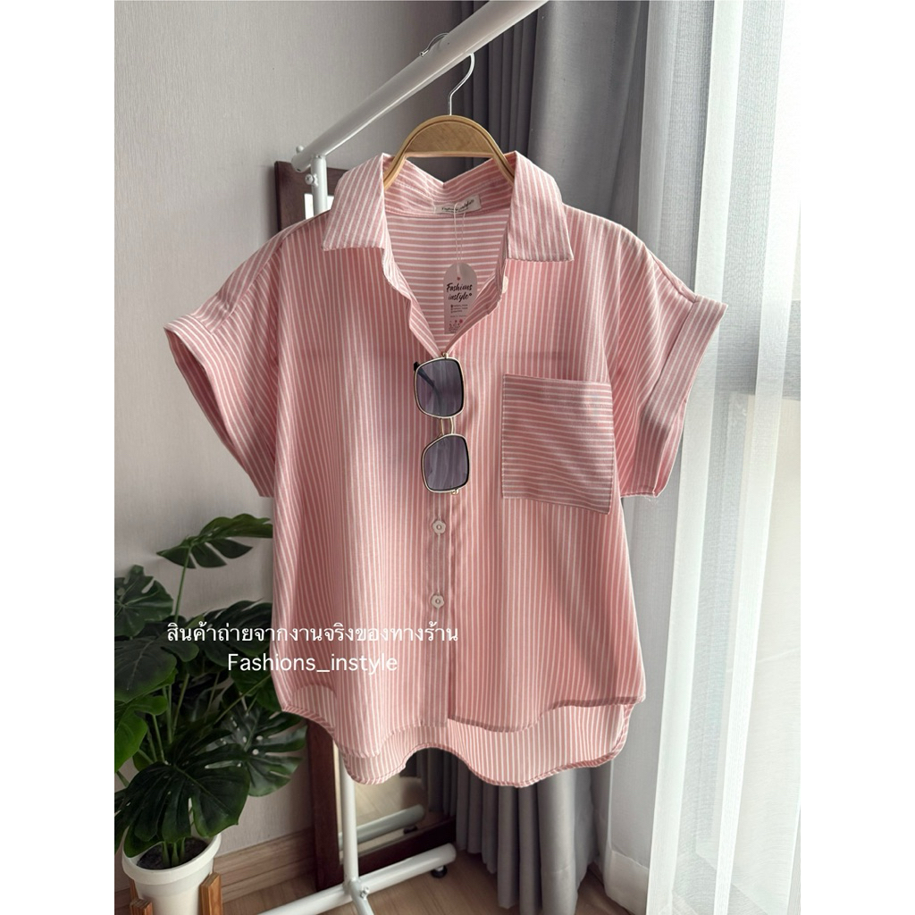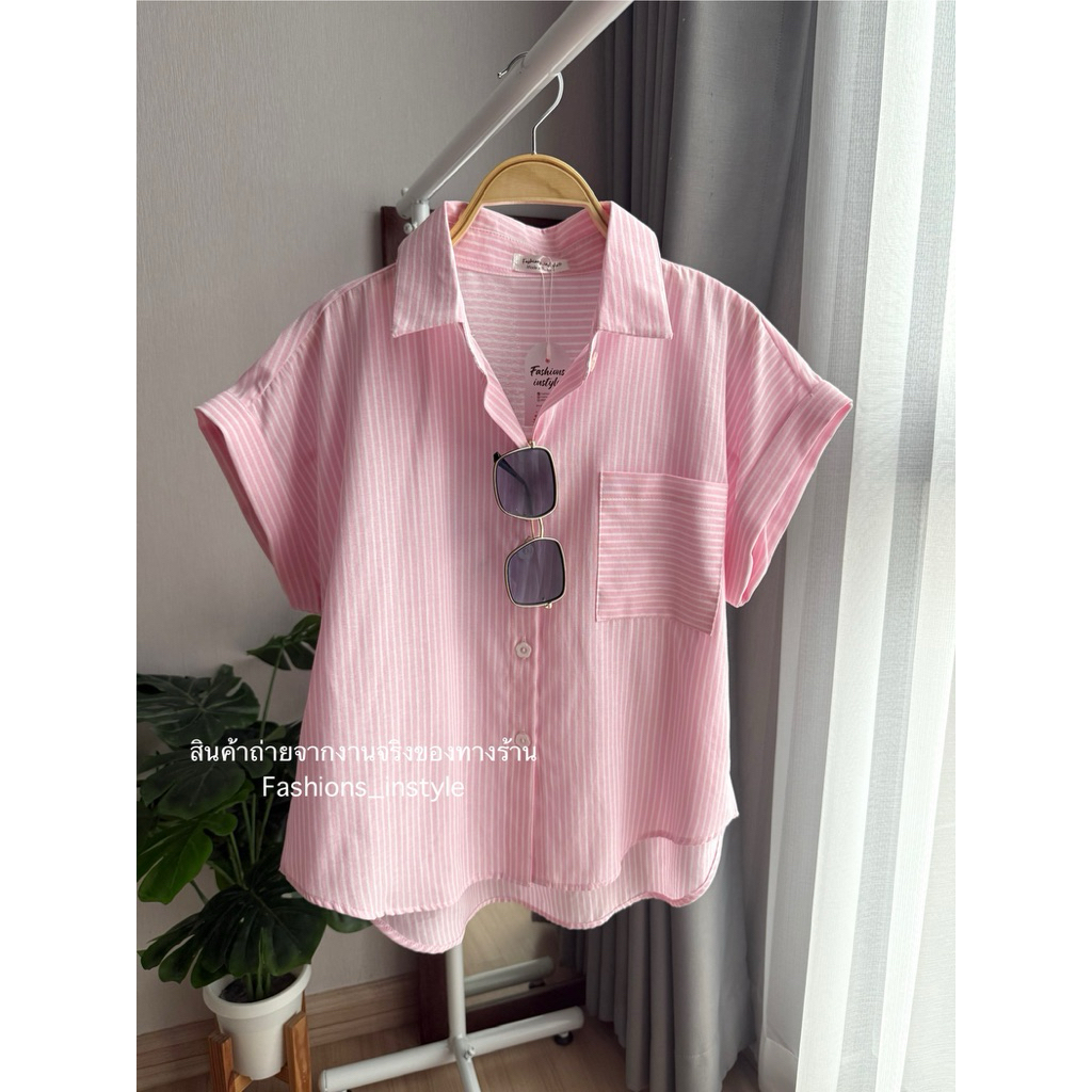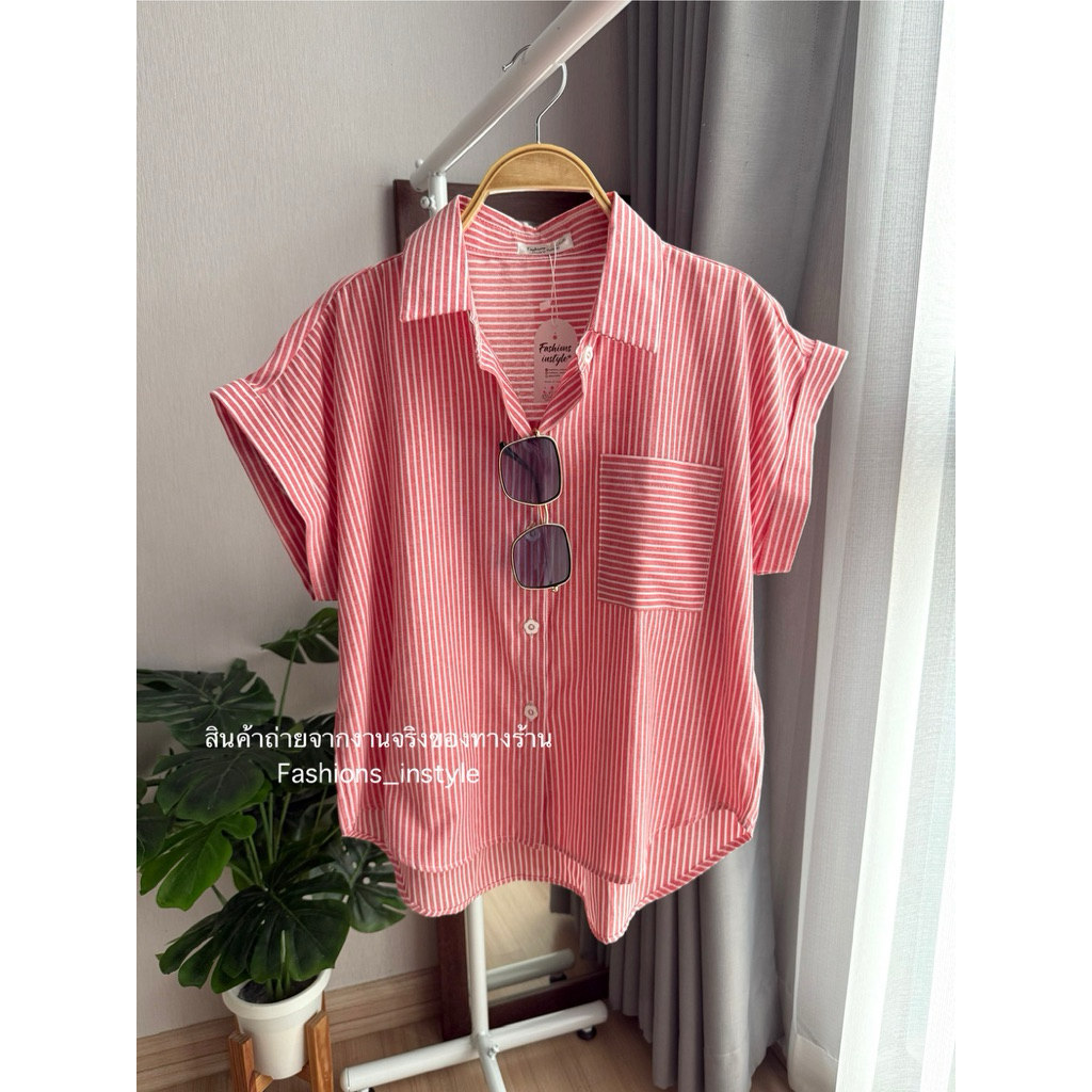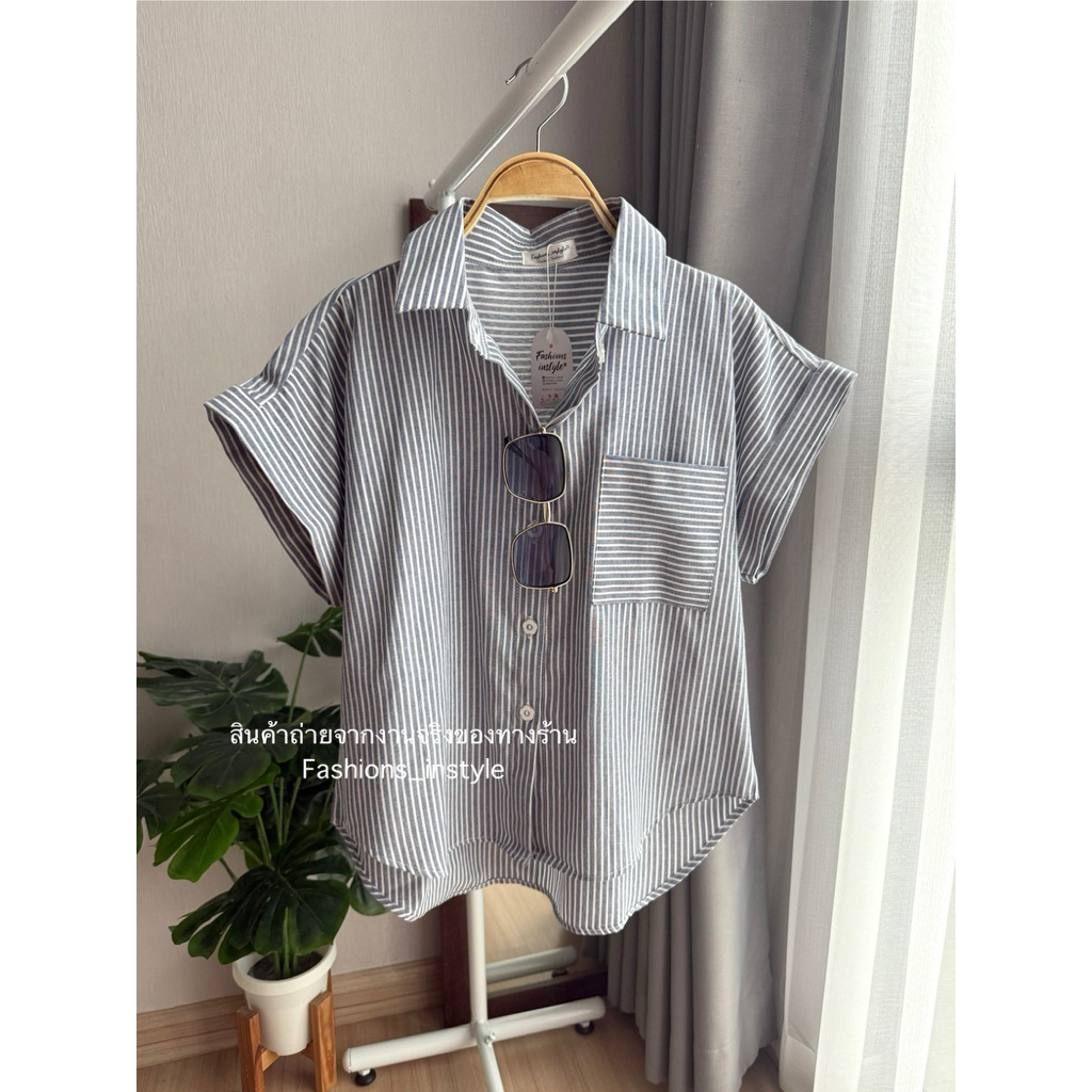 [อก 44] เสื้อเชิ้ตแขนล้ำผ้าคอตตอนกระเป๋าเดี่ยว (DC2)