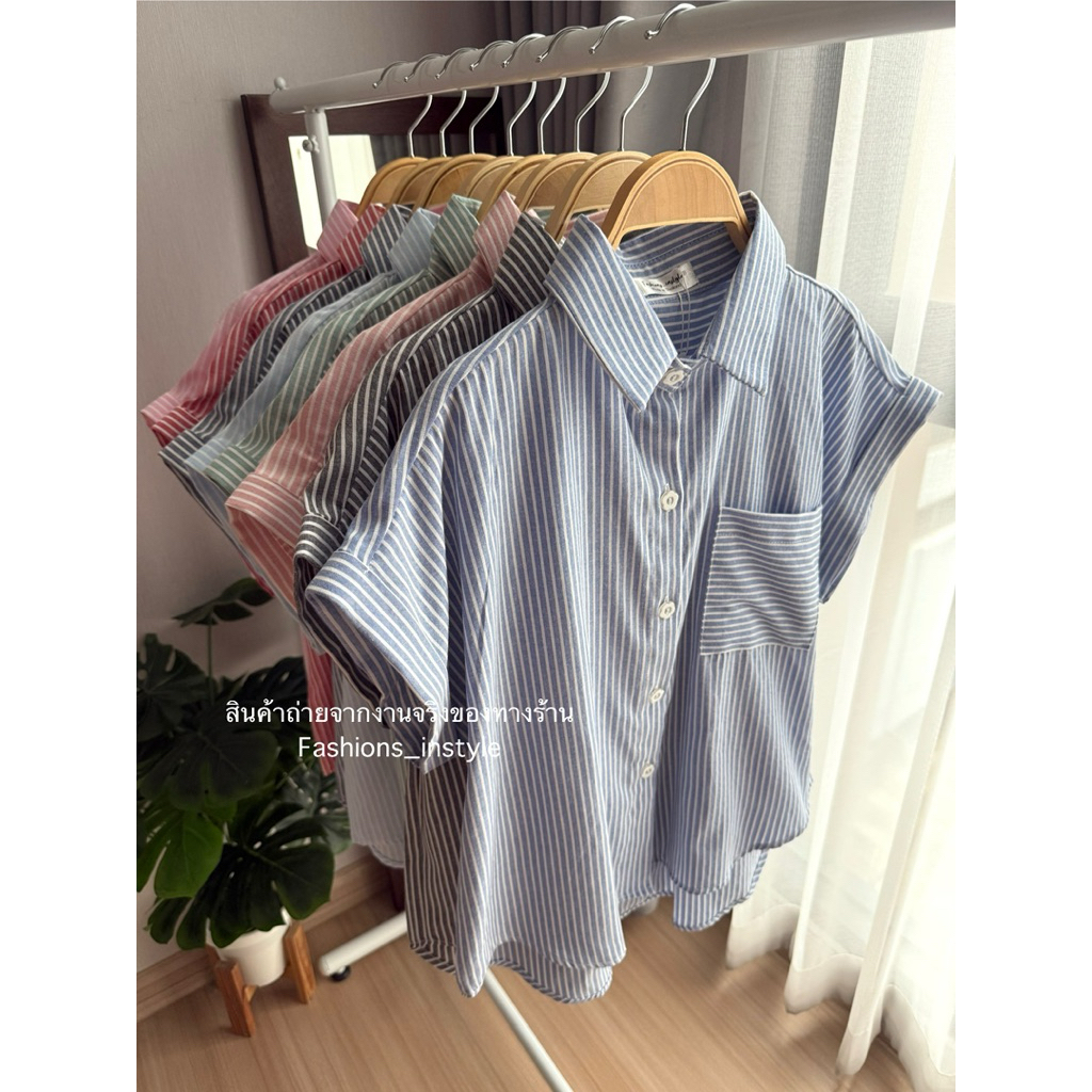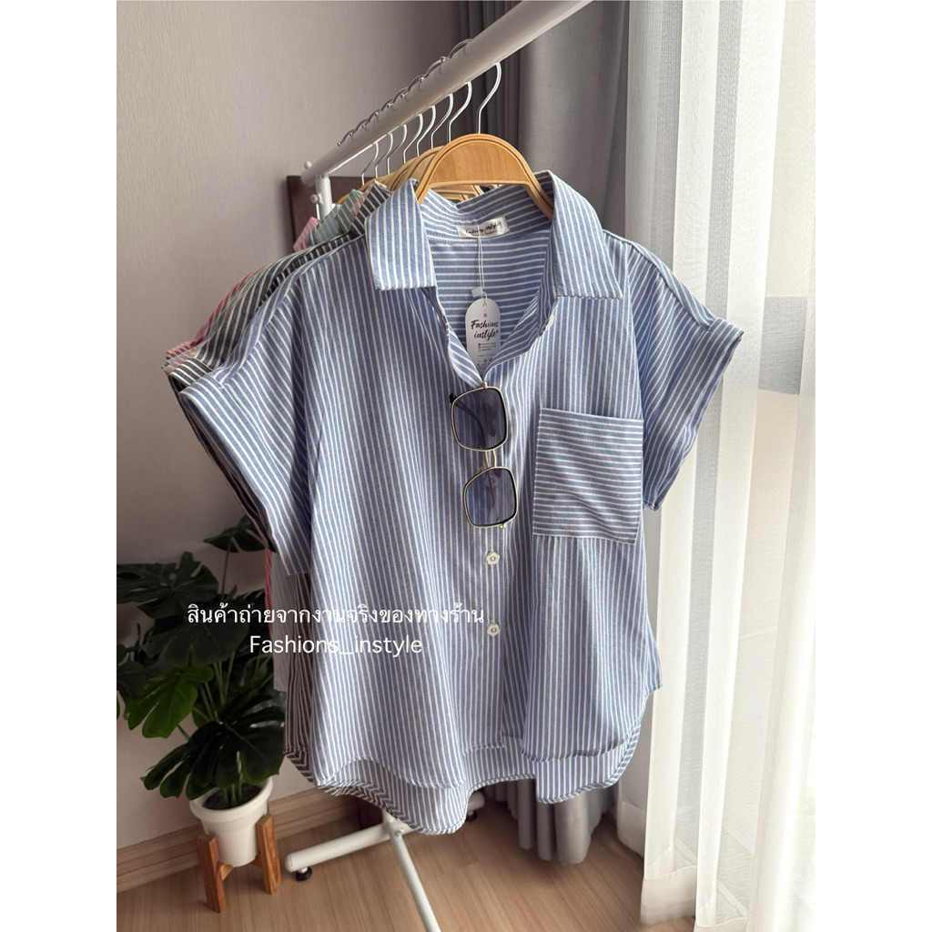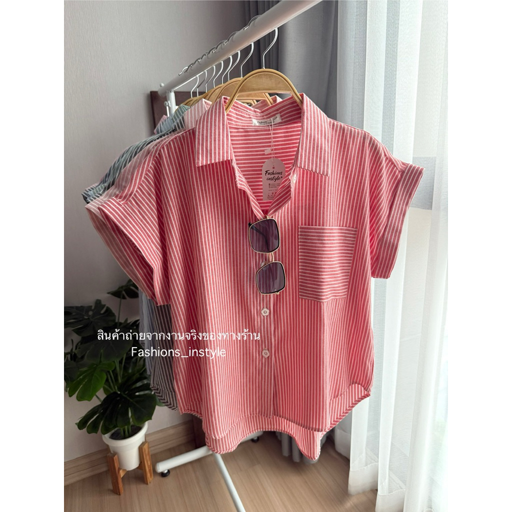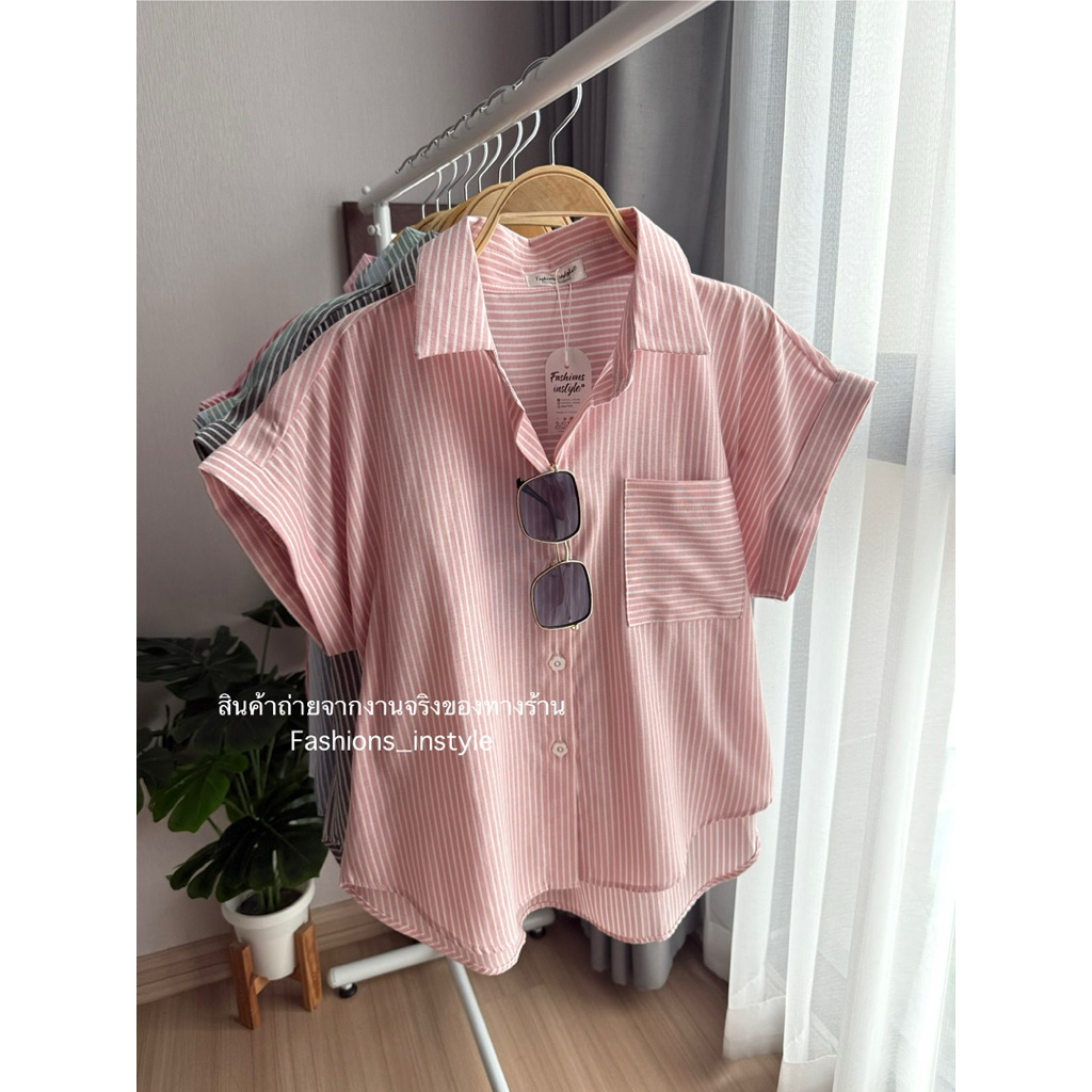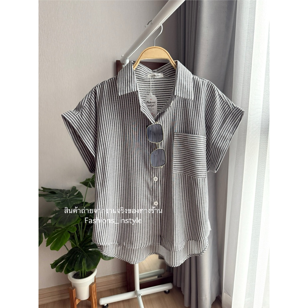 [อก 44] เสื้อเชิ้ตแขนล้ำผ้าคอตตอนกระเป๋าเดี่ยว (DC2)