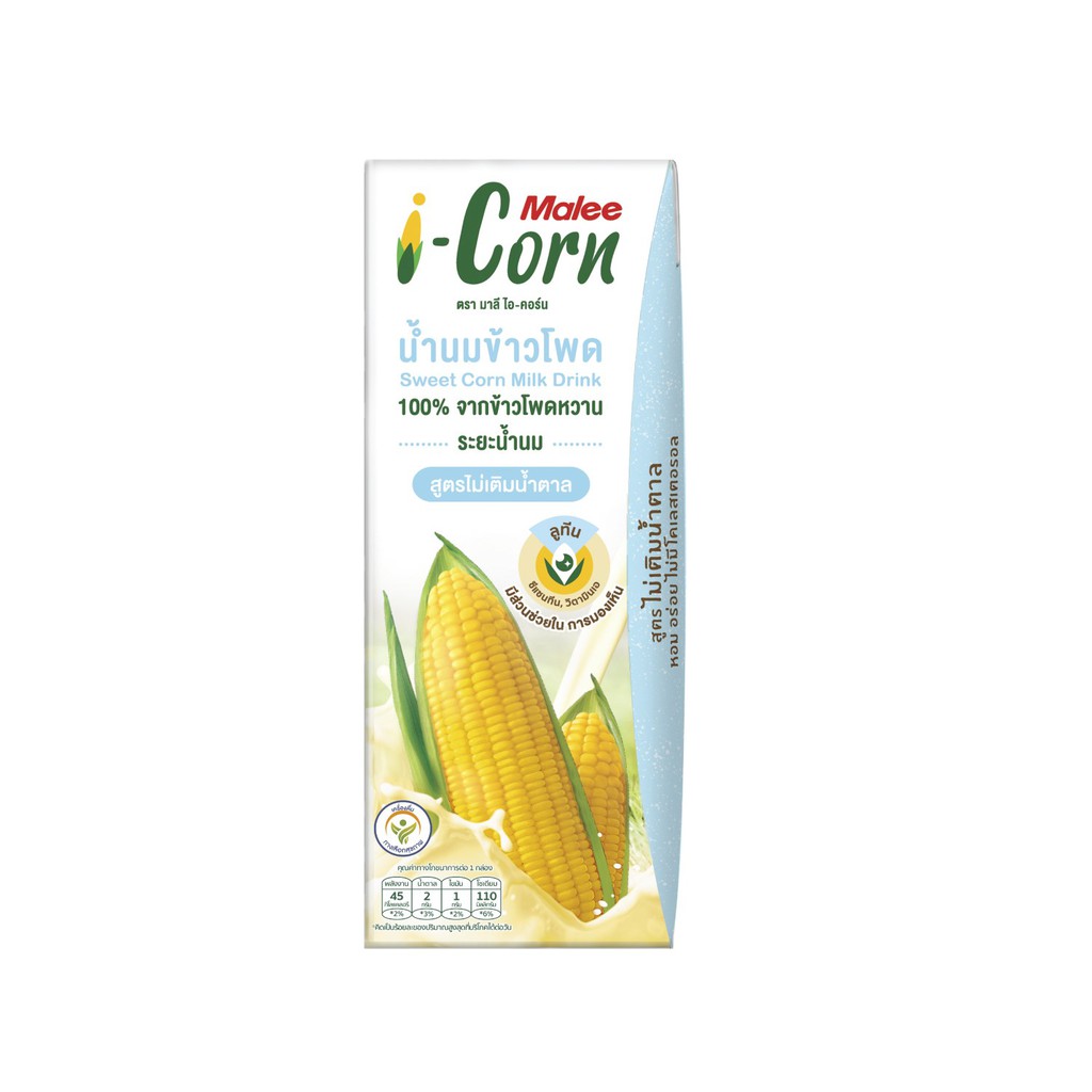 [ยกลัง! 24 กล่อง] Malee ไอคอร์น น้ำนมข้าวโพด 100% สูตรไม่เติมน้ำตาล ขนาด 180 มล.