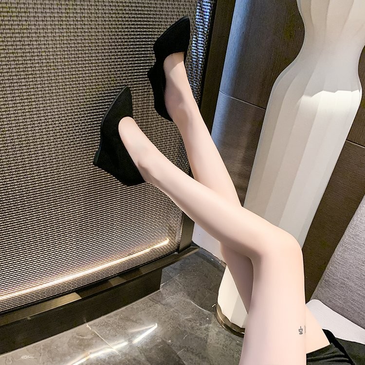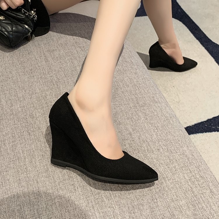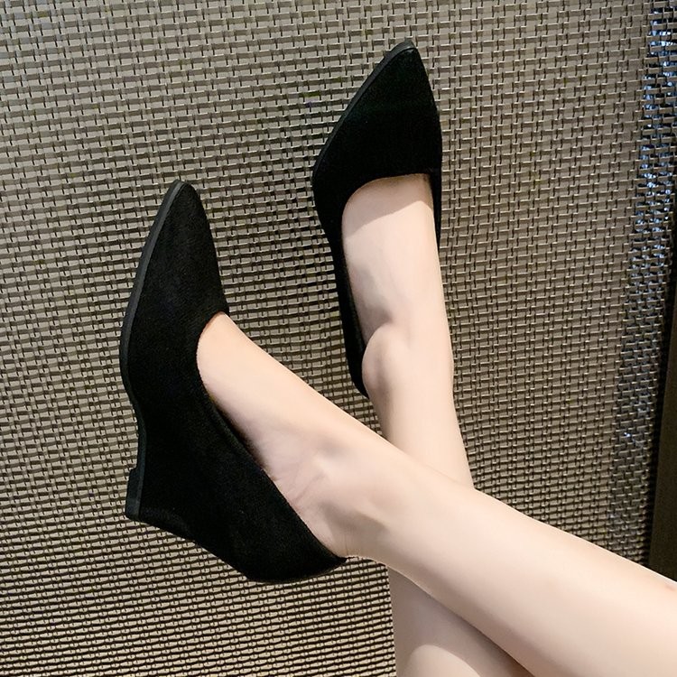 รองเท้าส้นเตารีดผู้หญิงไซส์ใหญ่รองเท้าส้นลิ่มแบบหัวแหลมและแบบสวมหัวยางกำมะหยี่ไซส์35-43