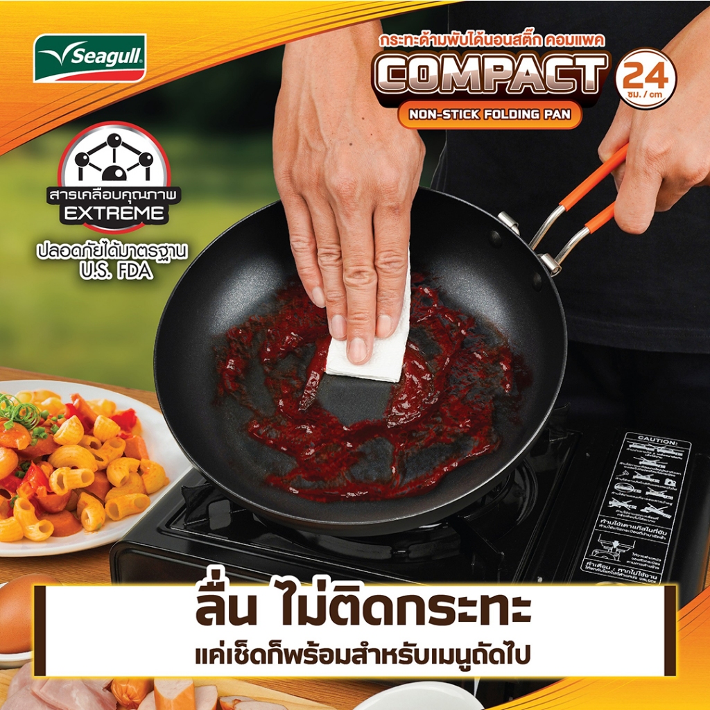 Seagull กระทะด้ามพับได้นอนสติ๊ก คอมแพค ขนาด 24 ซม. Compact Non-stick Folding Pan
