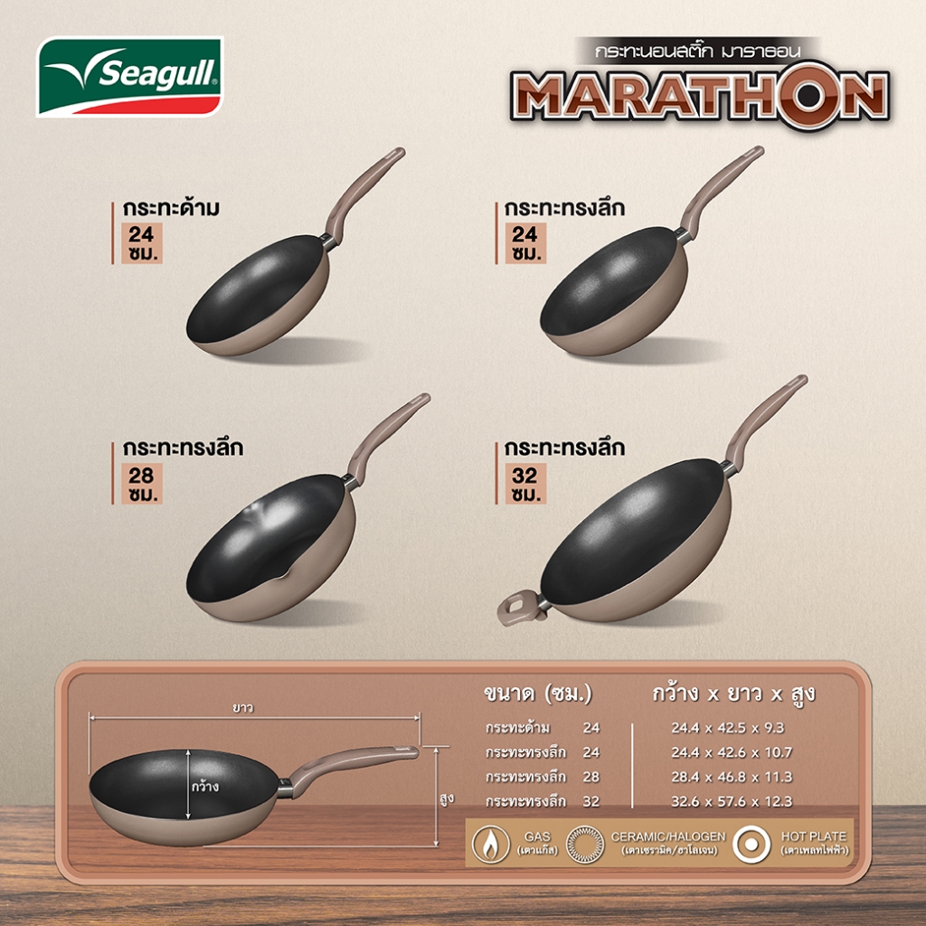 กระทะทรงลึกนอนสติ๊ก มาราธอน ขนาด 28 ซม. Marathon Non-stick Deep Fry Pan