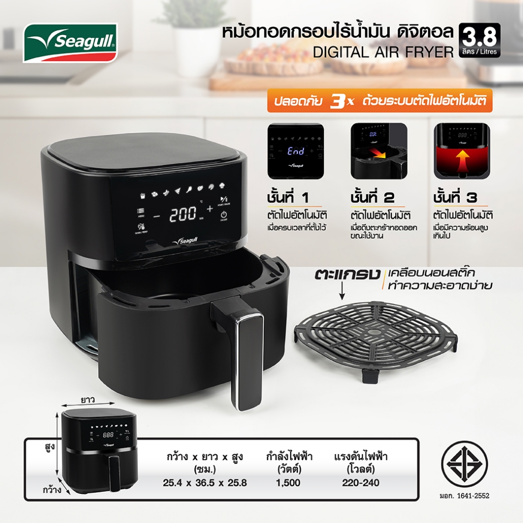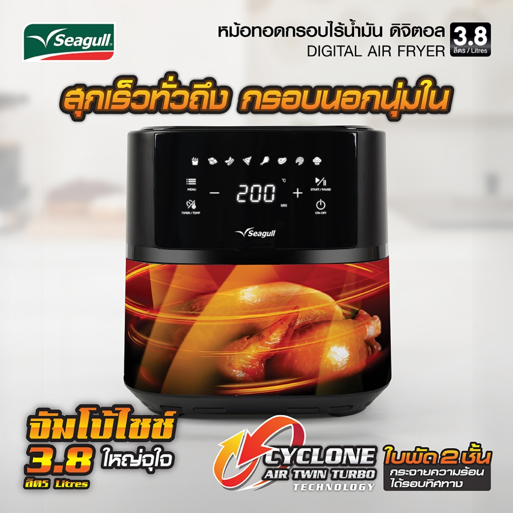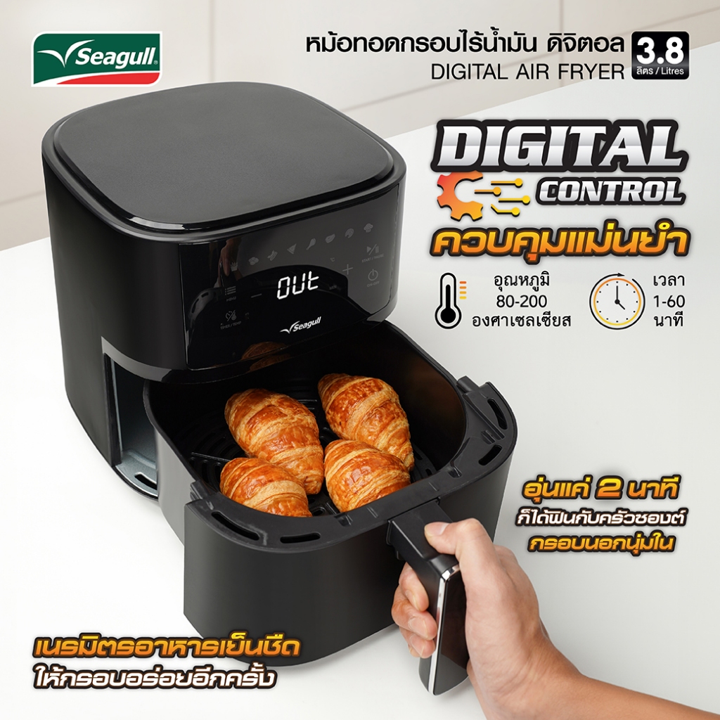 Seagull หม้อทอดกรอบไร้น้ำมัน ดิจิตอล ขนาด 3.8 ลิตร (สีดำ) Digital Air Fryer