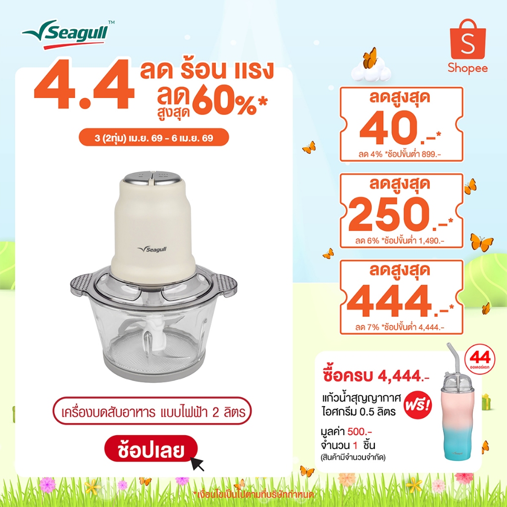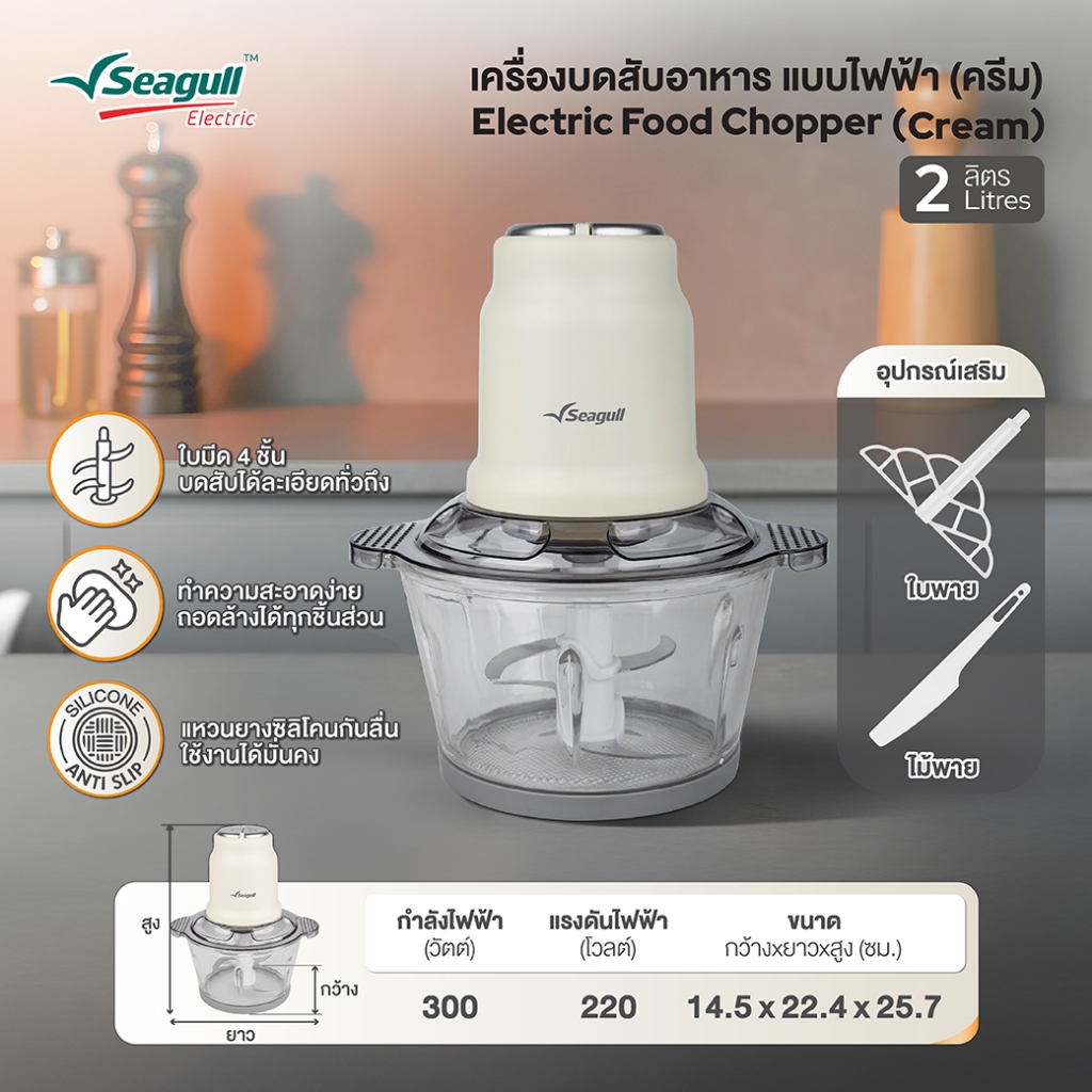 Seagull เครื่องบดสับอาหาร แบบไฟฟ้า ขนาด 2 ลิตร (ครีม) Electric Food Chopper