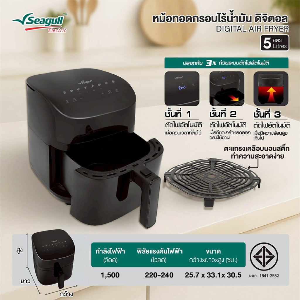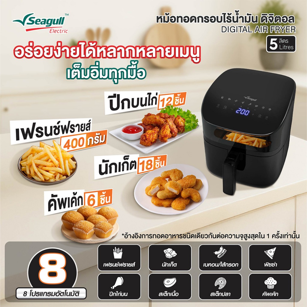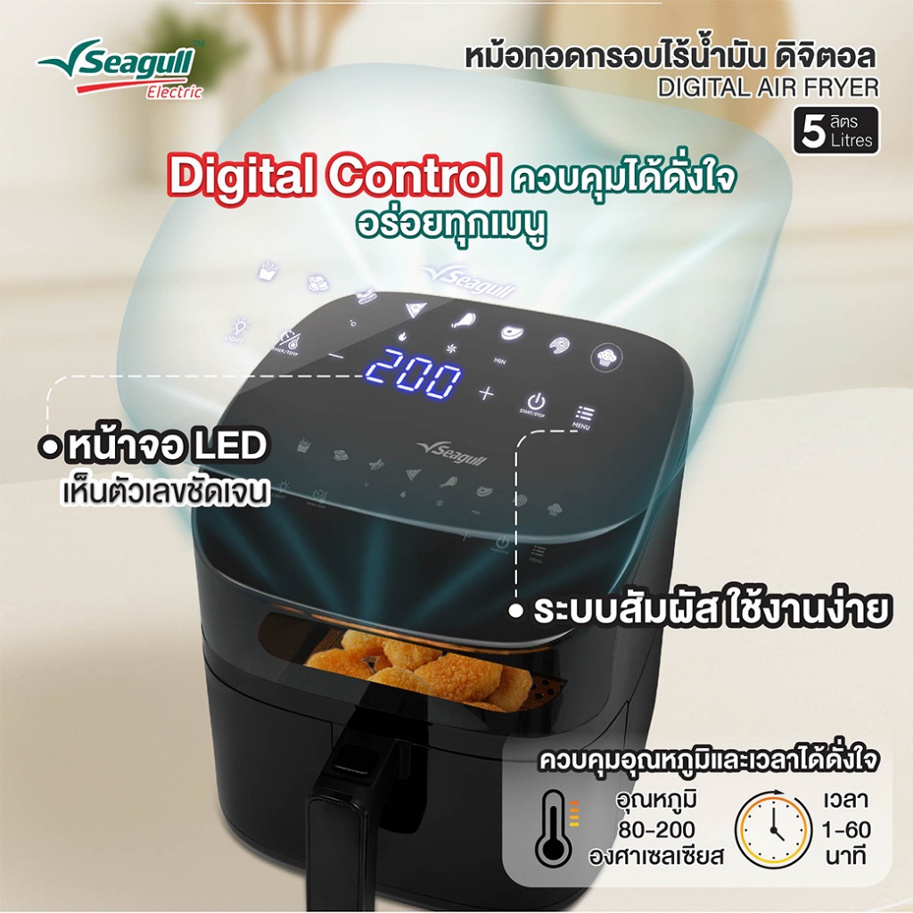 Seagull หม้อทอดกรอบไร้น้ำมัน ดิจิตอล ขนาด 5 ลิตร (สีดำ) Digital Air Fryer