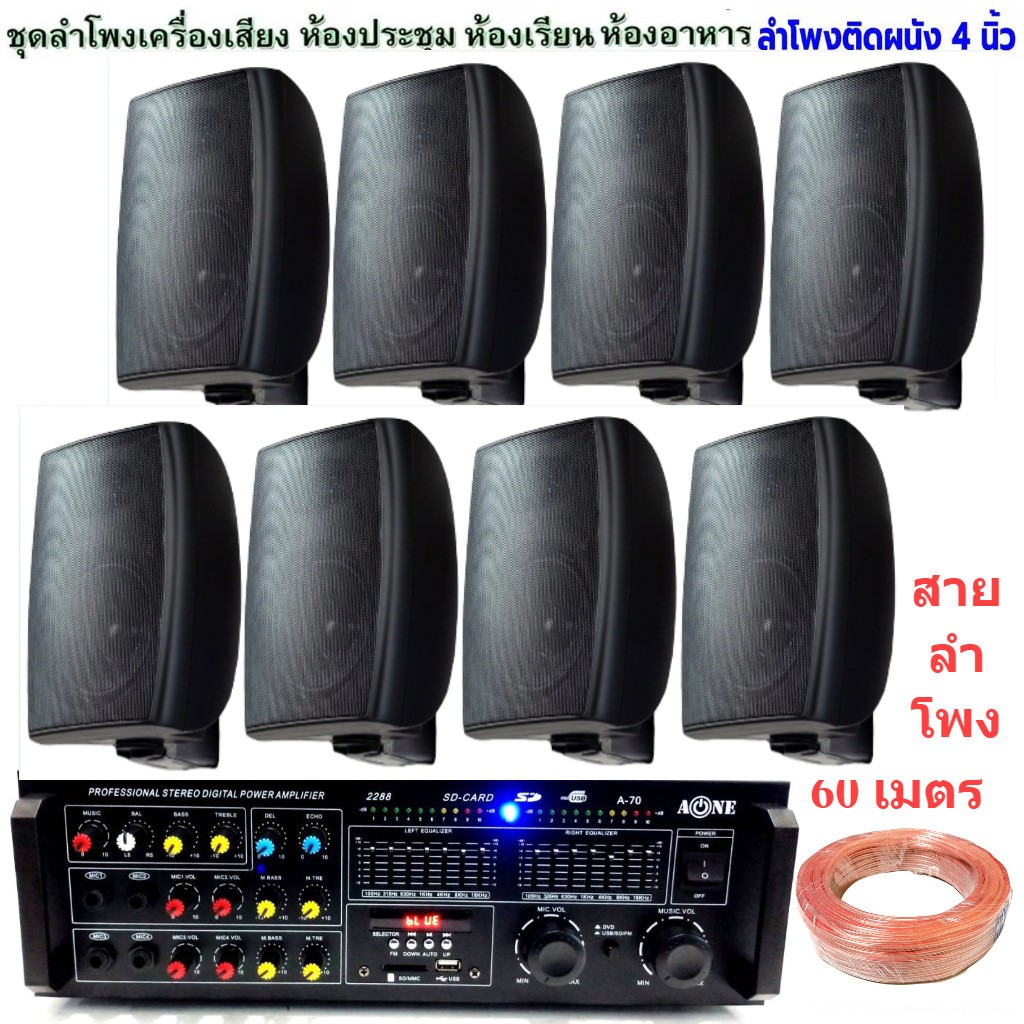ชุดเครื่องเสียง พร้อมลำโพงแขวน 8ใบ ห้องอาหาร ห้องคาราโอเกะ ประชาสัมพันธ์ ห้องประชุม ห้องเรียน (AV-102+ZIN-4*8) hy311 A70