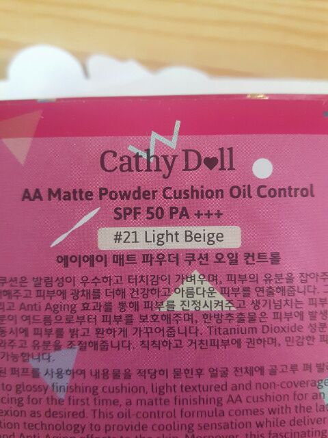 แป้งคูชั่นเนื้อแมทท์ Cathy Doll AA matte powder cushion oil control SPF 50 PA+++