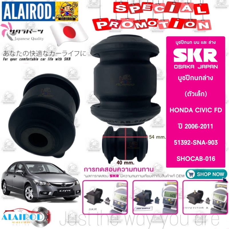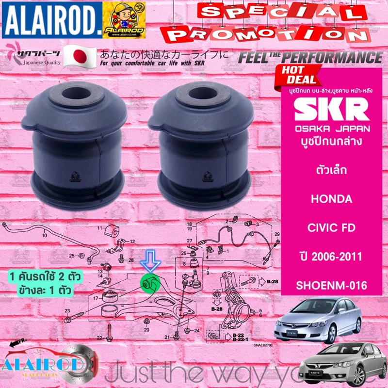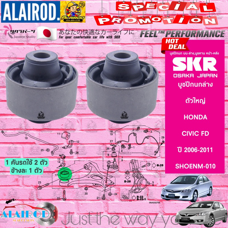 SKR บูชปีกนกล่าง HONDA CIVIC FD ปี 2006-2011 , CIVIC FB ปี 2012-2015 (ตัวใหญ่,ตัวเล็ก) แบรนด์ SKR Made In Japan
