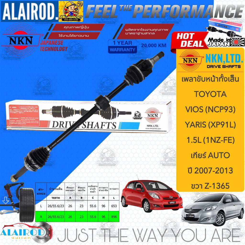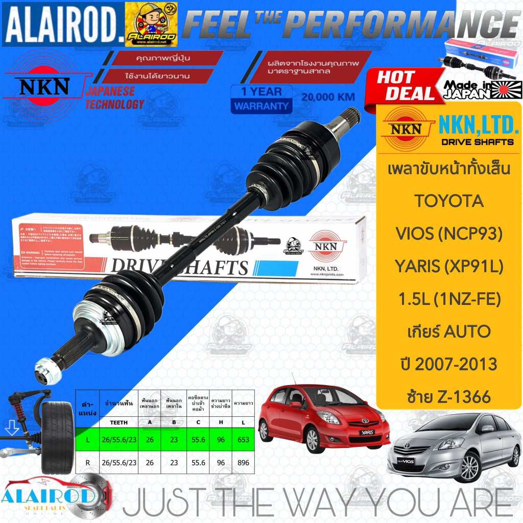 NKN แท้ เพลาขับหน้าทั้งเส้น TOYOTA VIOS NCP93,YARIS NXP91 เกียร์ AUTO ปี 2007-2013 สินค้านำเข้าจากประเทศญี่ปุ่น