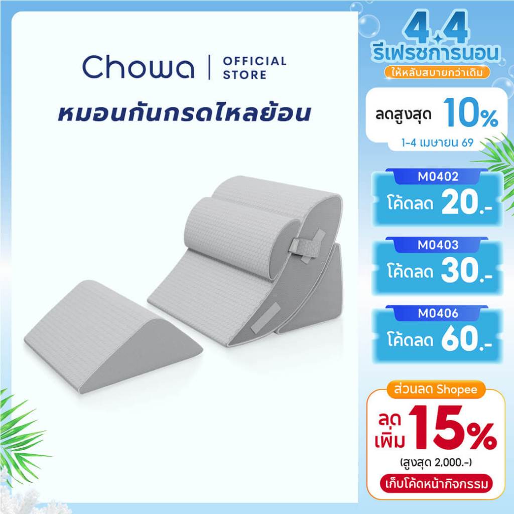 [Free ถุงสุญญากาศ] Chowa หมอนกันกรดไหลย้อน ปรับองศาเอนนอนได้ วัสดุไฮเปอร์เมมโมรี่โฟม