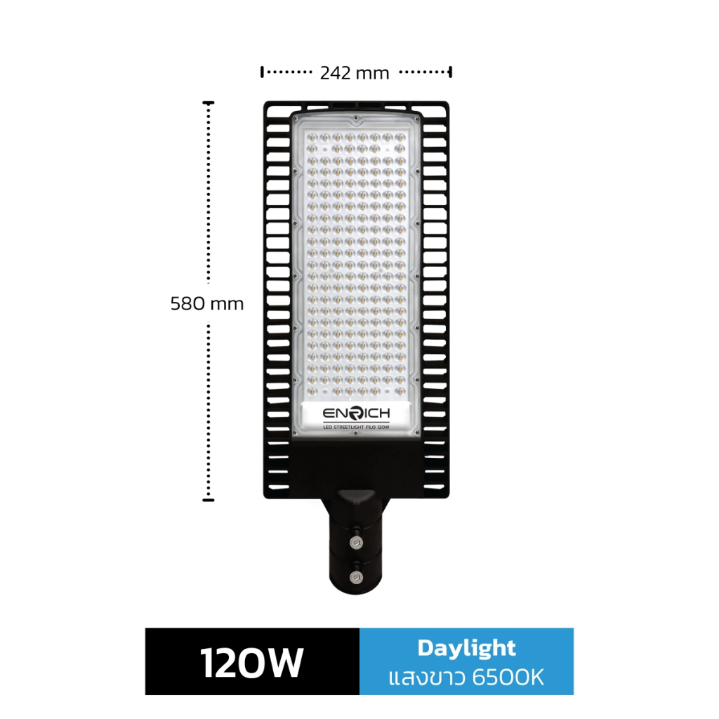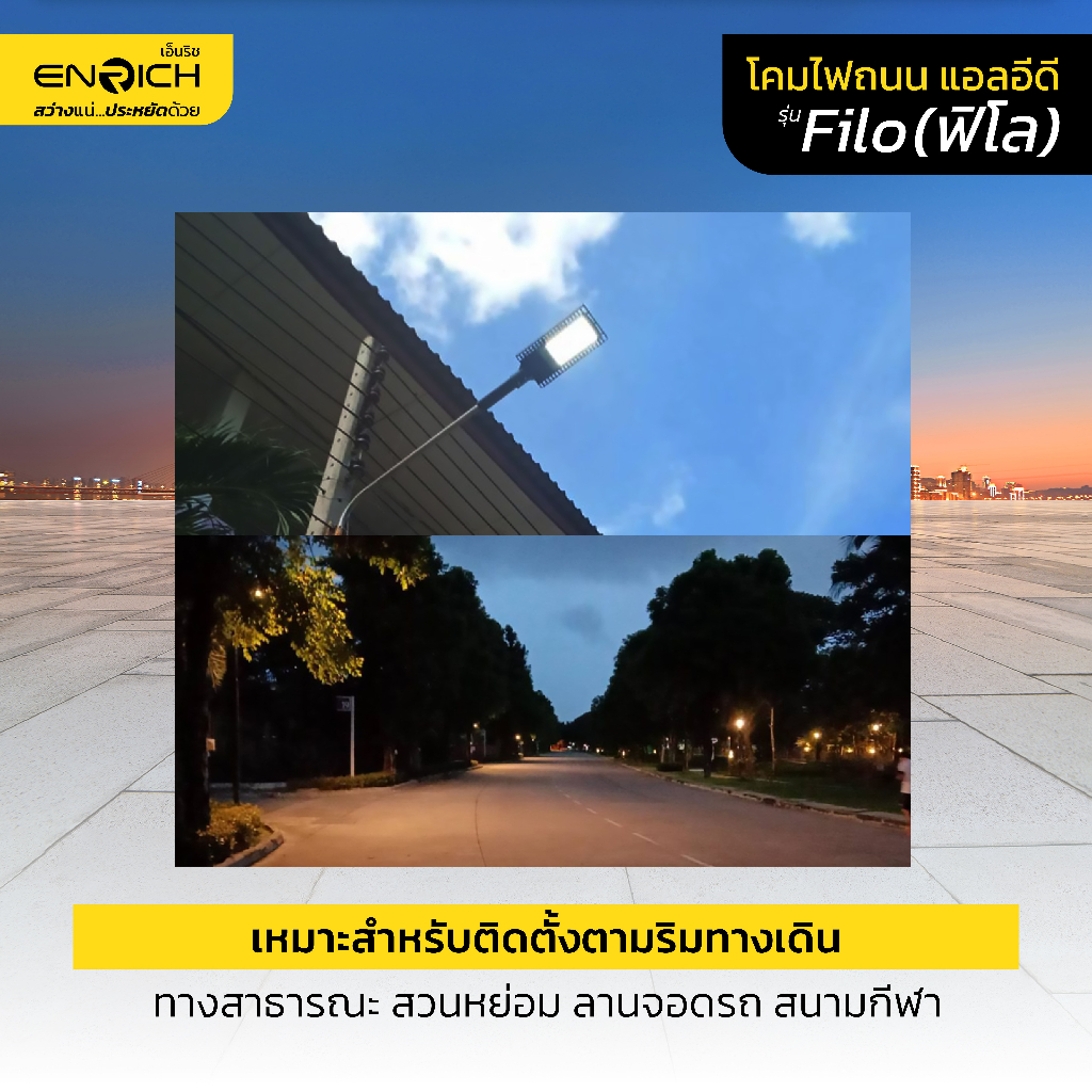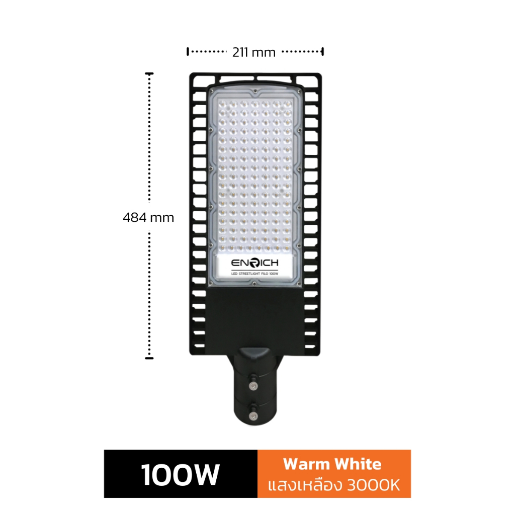 โคมไฟถนน LED ENRICH รุ่น FILO ขนาด 30W-150W แสงขาว เหลือง (รับประกัน 2 ปี) มีมอก. โคมไฟ led กันน้ำ IP65 ไฟถนน led 220v