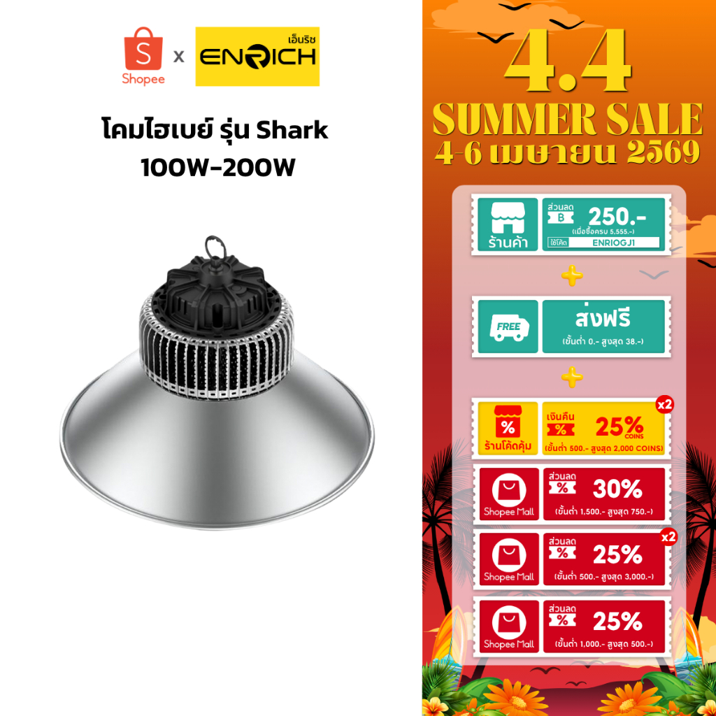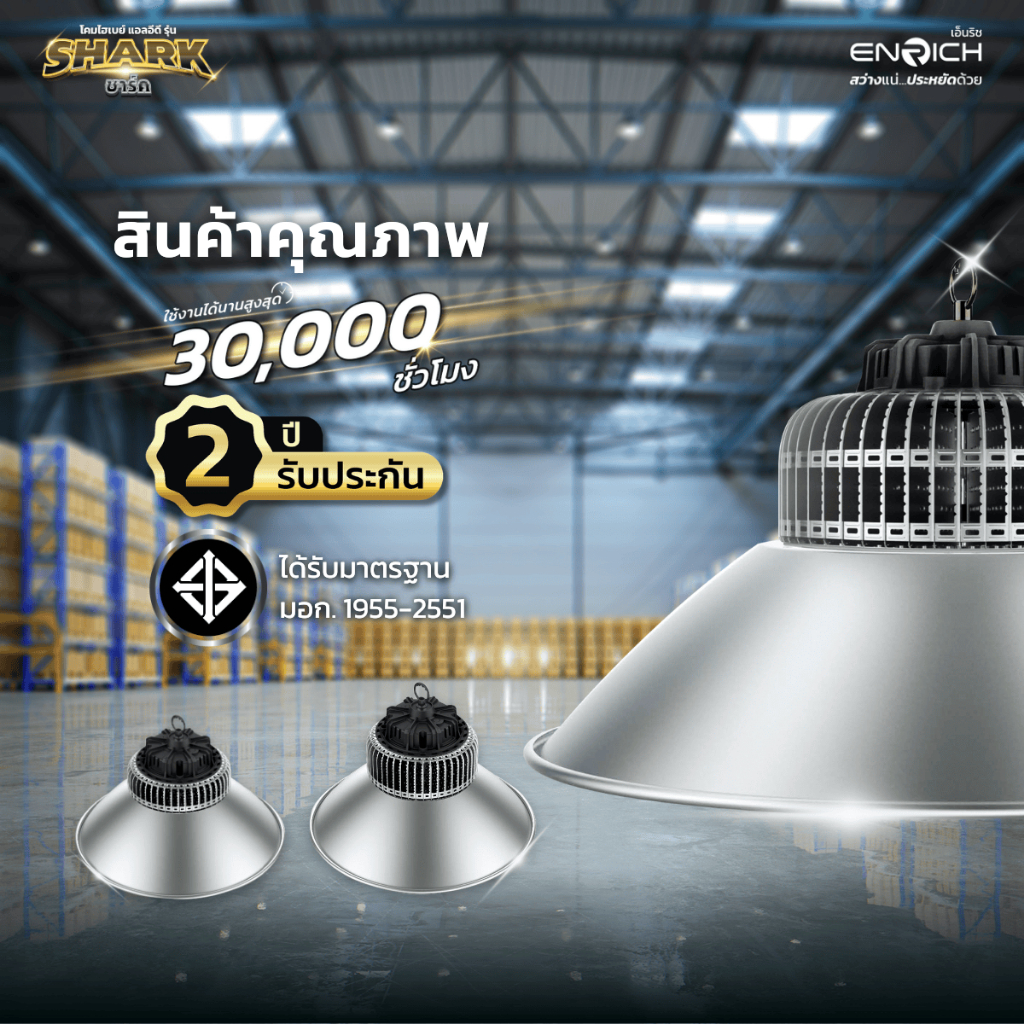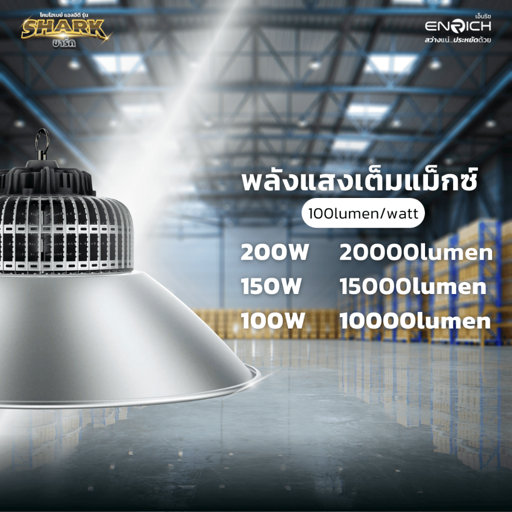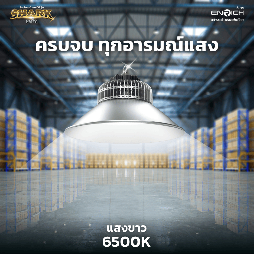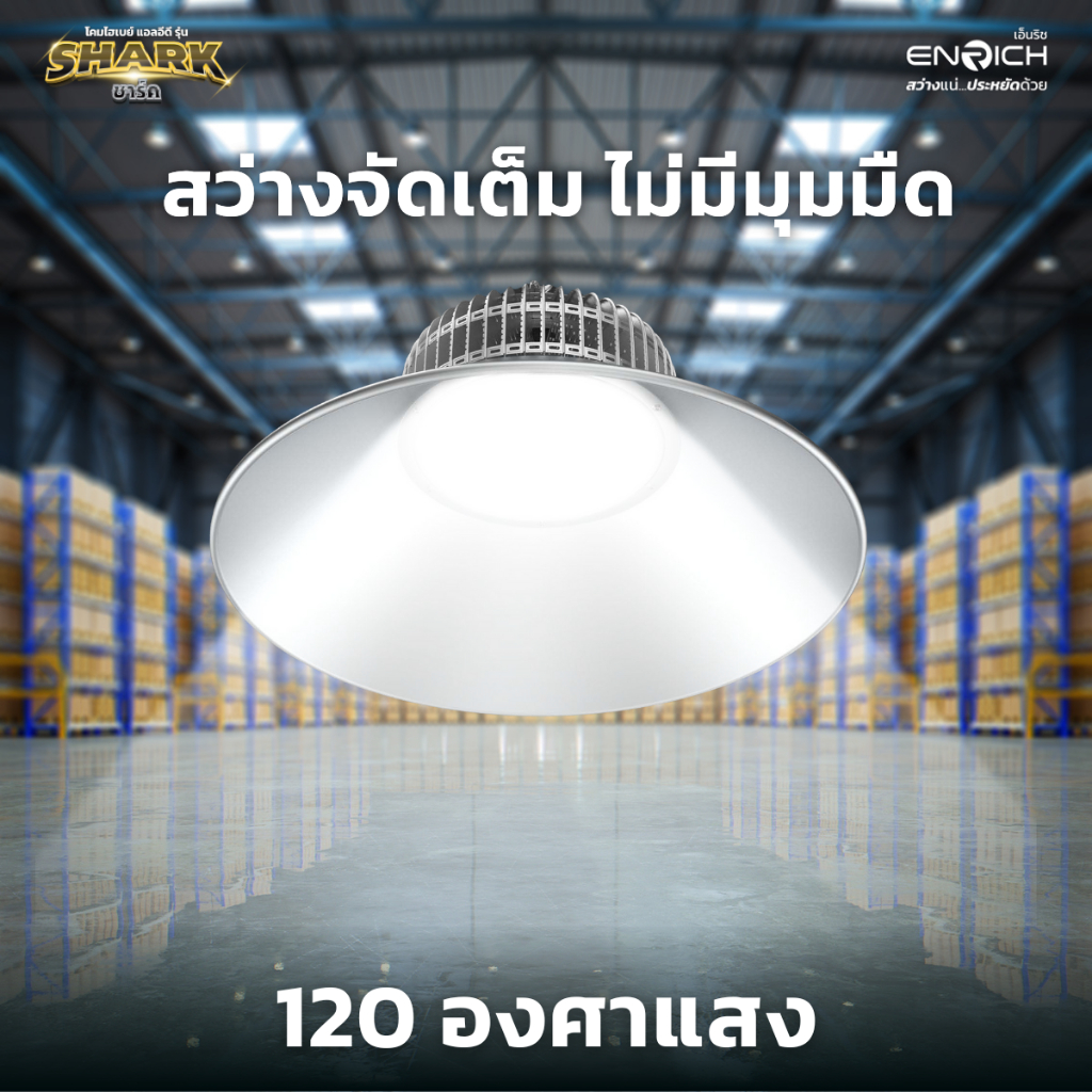 ENRICH โคมไฮเบย์ LED High Bay รุ่น Shark แสงขาว มาพร้อมฝาชี Reflector ขนาด 120° โคมโรงงาน