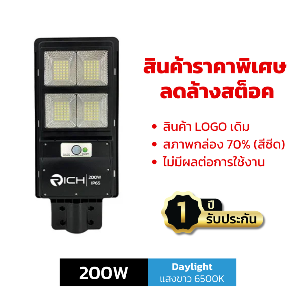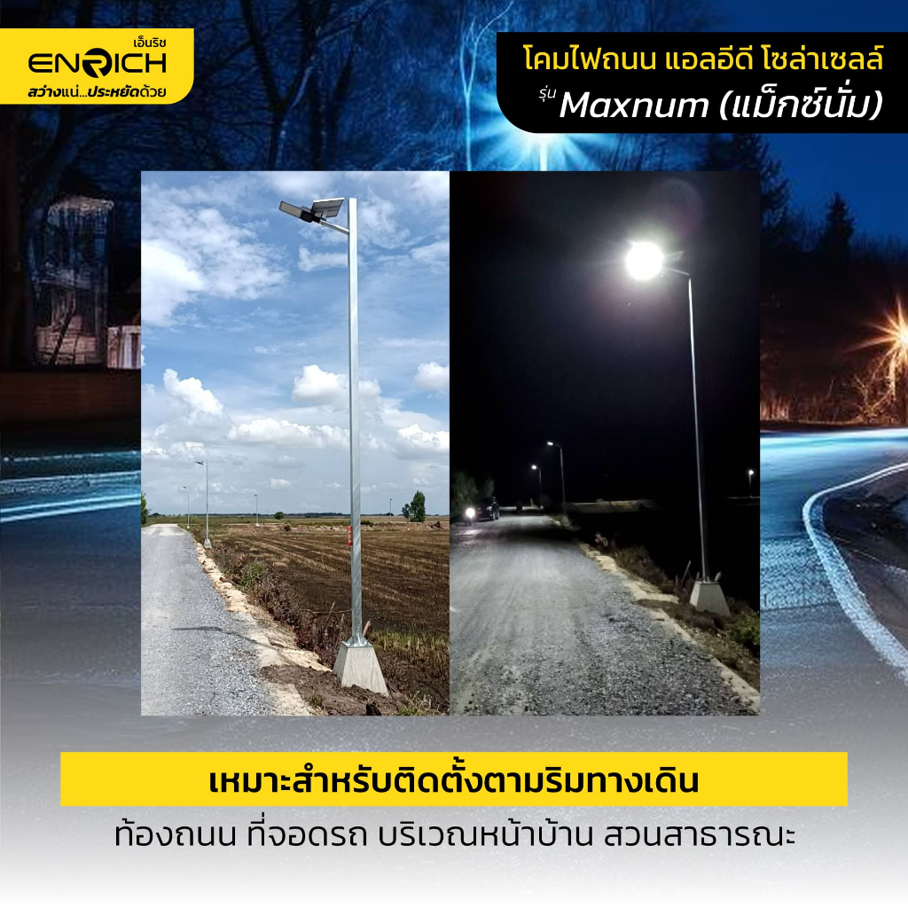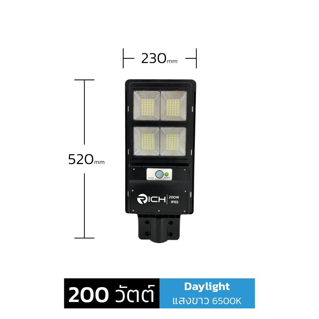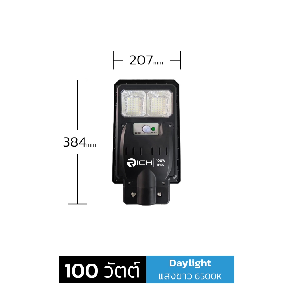 ENRICH โคมไฟถนนโซล่าเซลล์ 100W 200W 300W 400W รุ่น SUNLIGHT แสงขาว พร้อมเซ็นเซอร์ รีโมทคอนโทรล กันน้ำ IP65