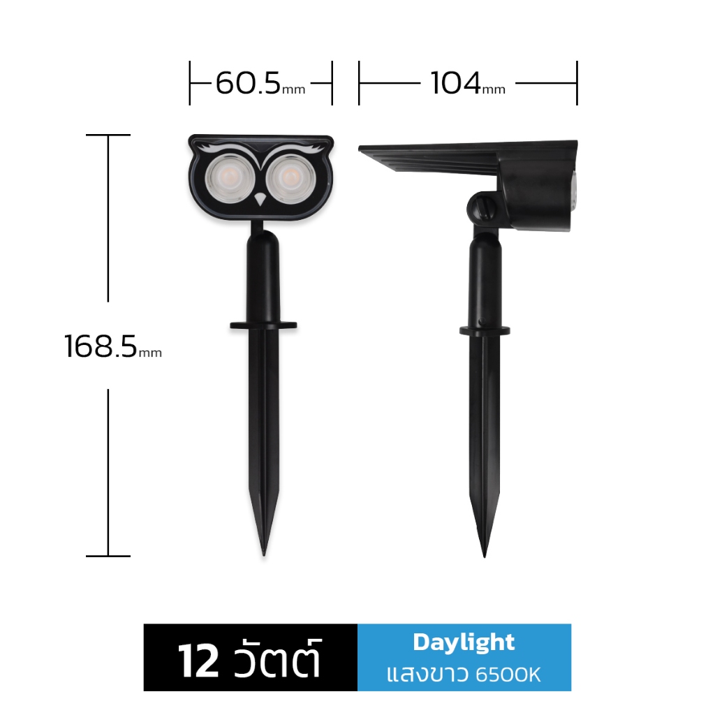 ENRICH โคมไฟสนาม แบบโซล่าเซลล์ LED Solar Garden รุ่น Spy 12W มีแสงขาว แสงเหลือง (1 กล่องได้ 2 ตัว)