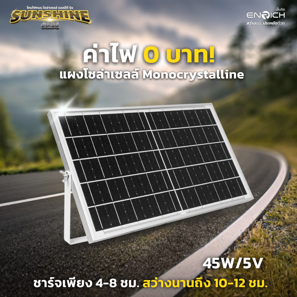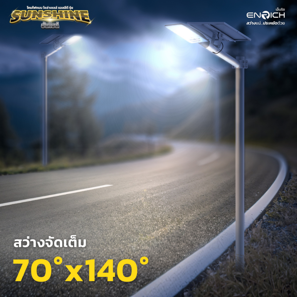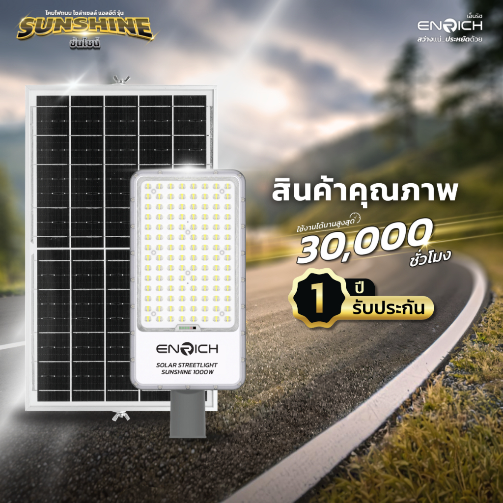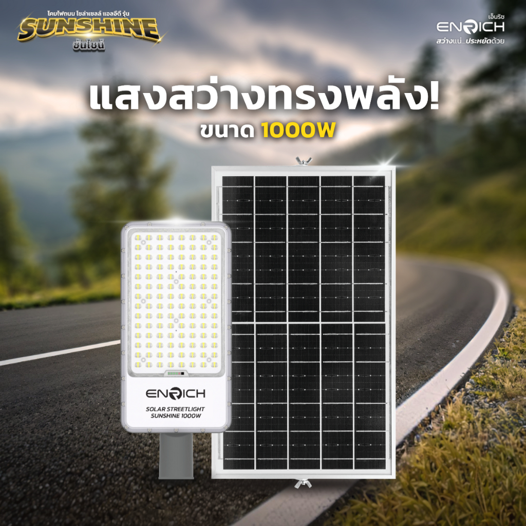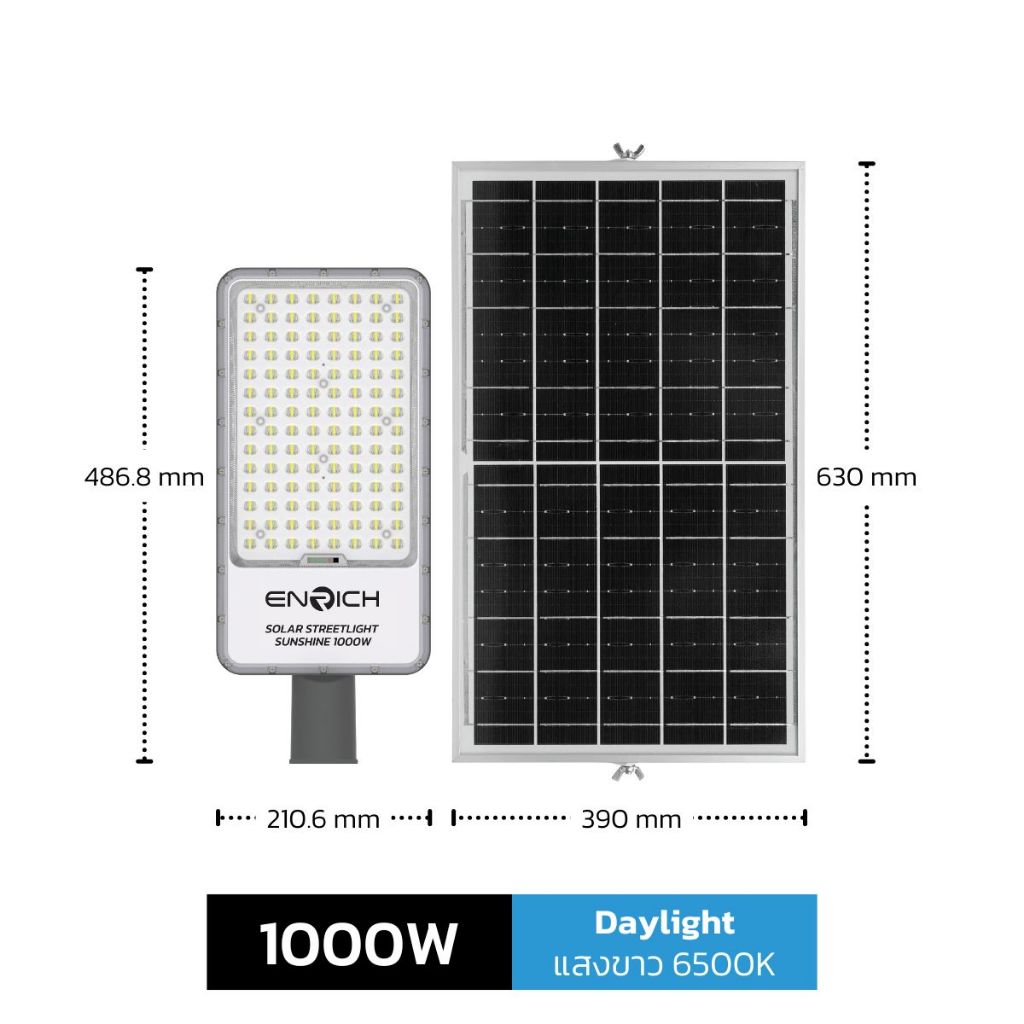ENRICH โคมไฟถนนโซล่าเซลล์ LED 1000W แสงขาว รุ่น Sunshine แบบแผงแยกพร้อมอุปกรณ์ครบชุด รับประกัน 1 ปี