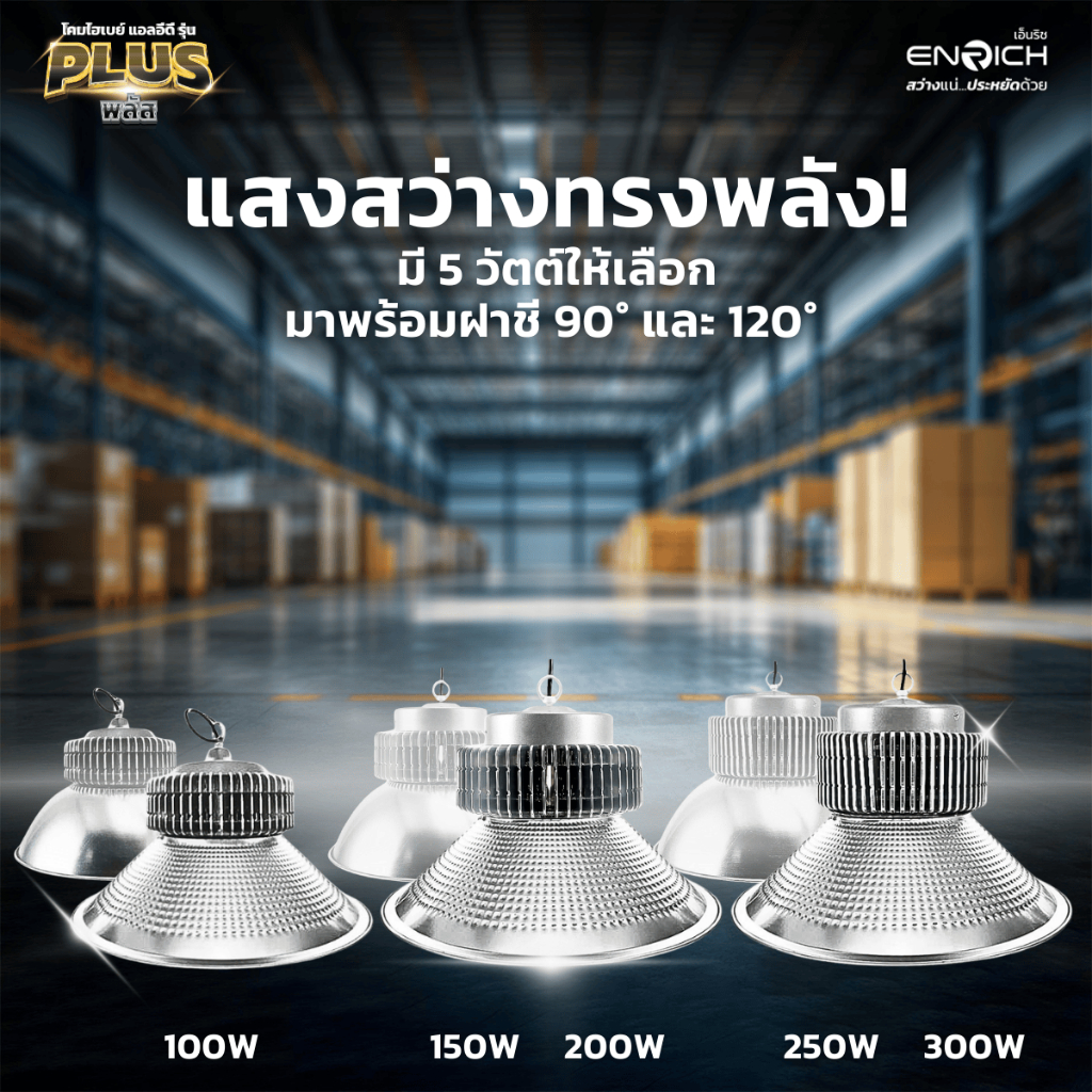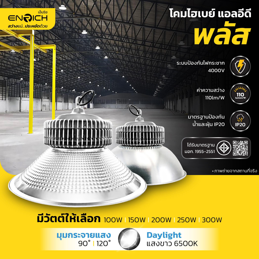 ENRICH โคมไฮเบย์ LED High Bay รุ่น Plus ขนาด 100W-300W แสงขาว โคมโรงงาน