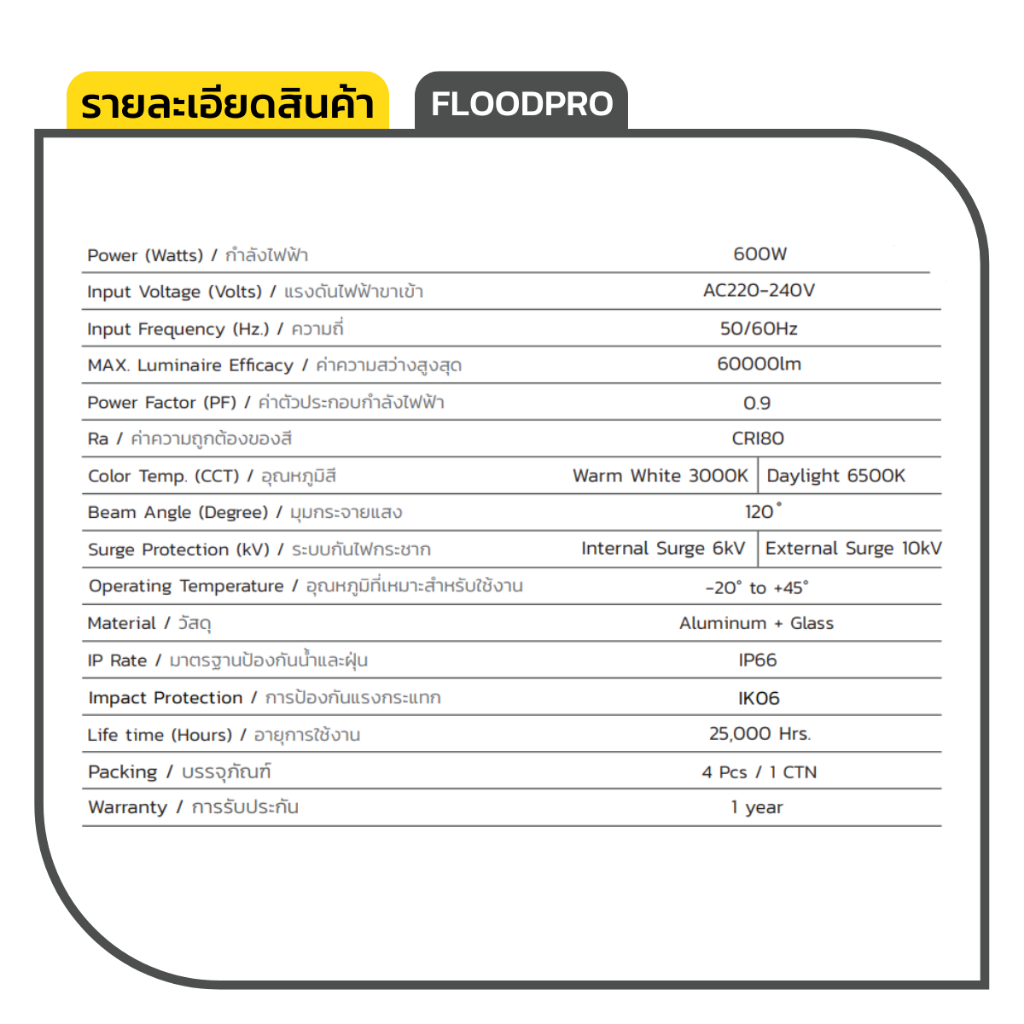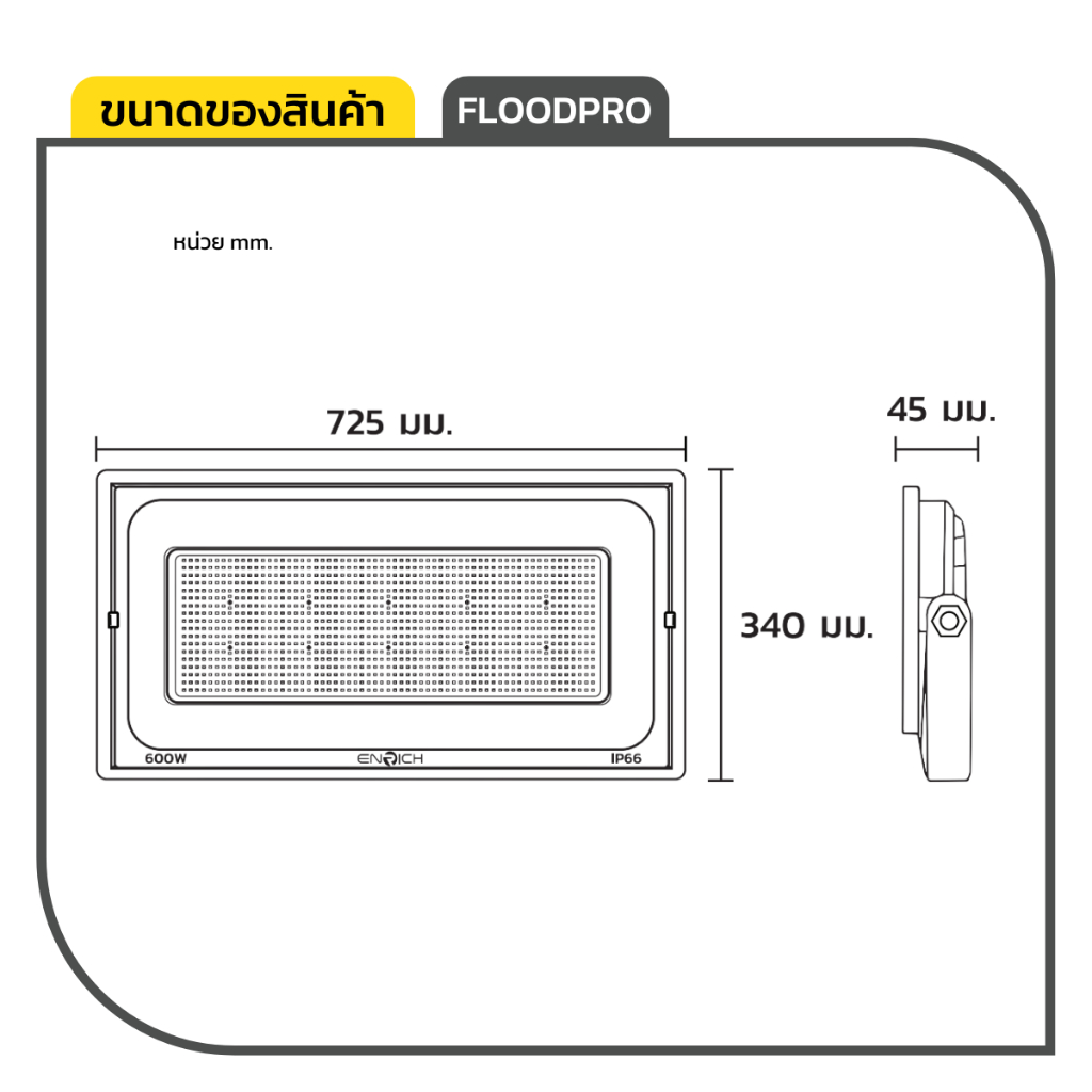 ENRICH โคมไฟสปอร์ตไลท์ LED FLOODPRO 600W – แสงขาว / แสงเหลือง | รับประกัน 1 ปี