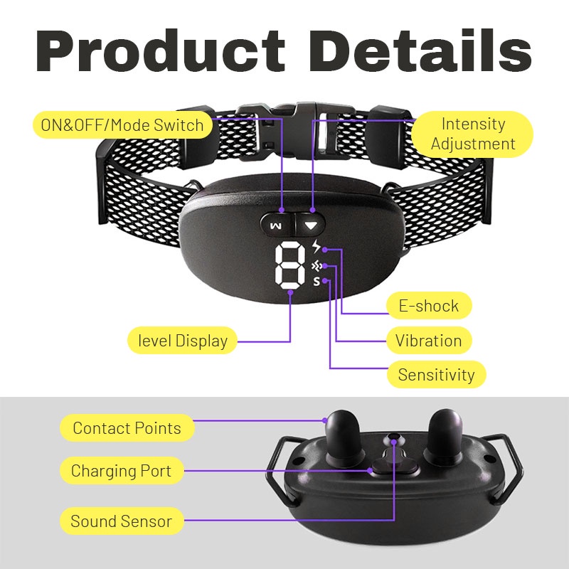HamshMoc Electric Dog Collar Smart Anti-Bark Waterproof Pet Collar Adjustable Automatic Stop Barking For Small Medium Large Dogs Training