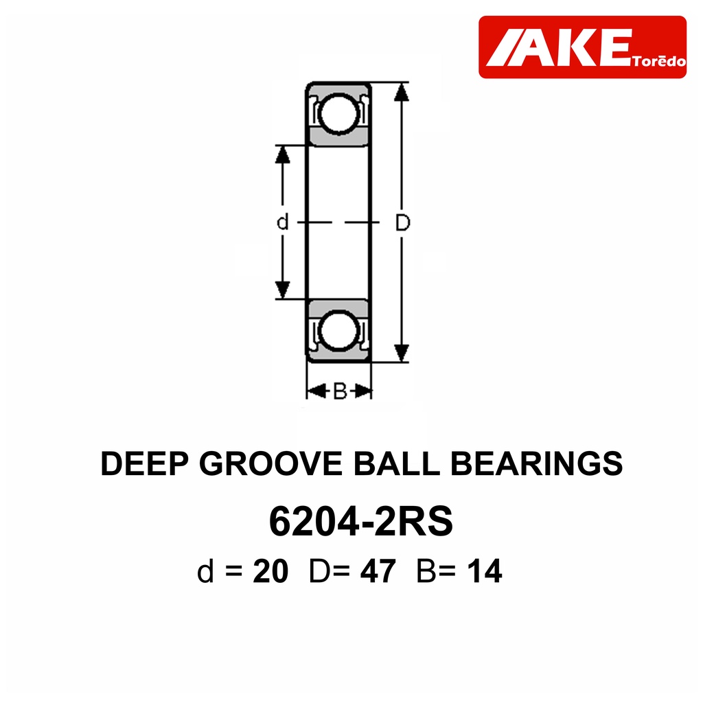 ลูกปืน เบอร์ 6204-2RS ( 20x47x14 mm ) ลูกปืนตลับ ตลับลูกปืน ฝายาง 2 ข้าง 6204RS โดย AKE