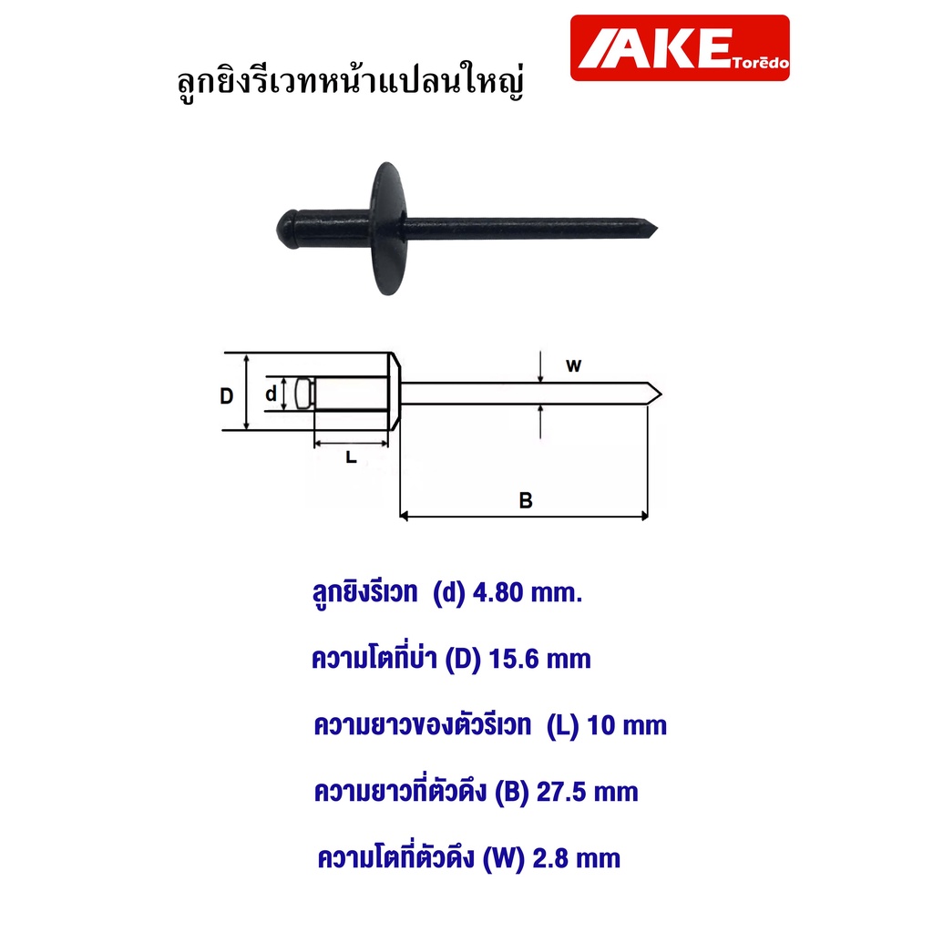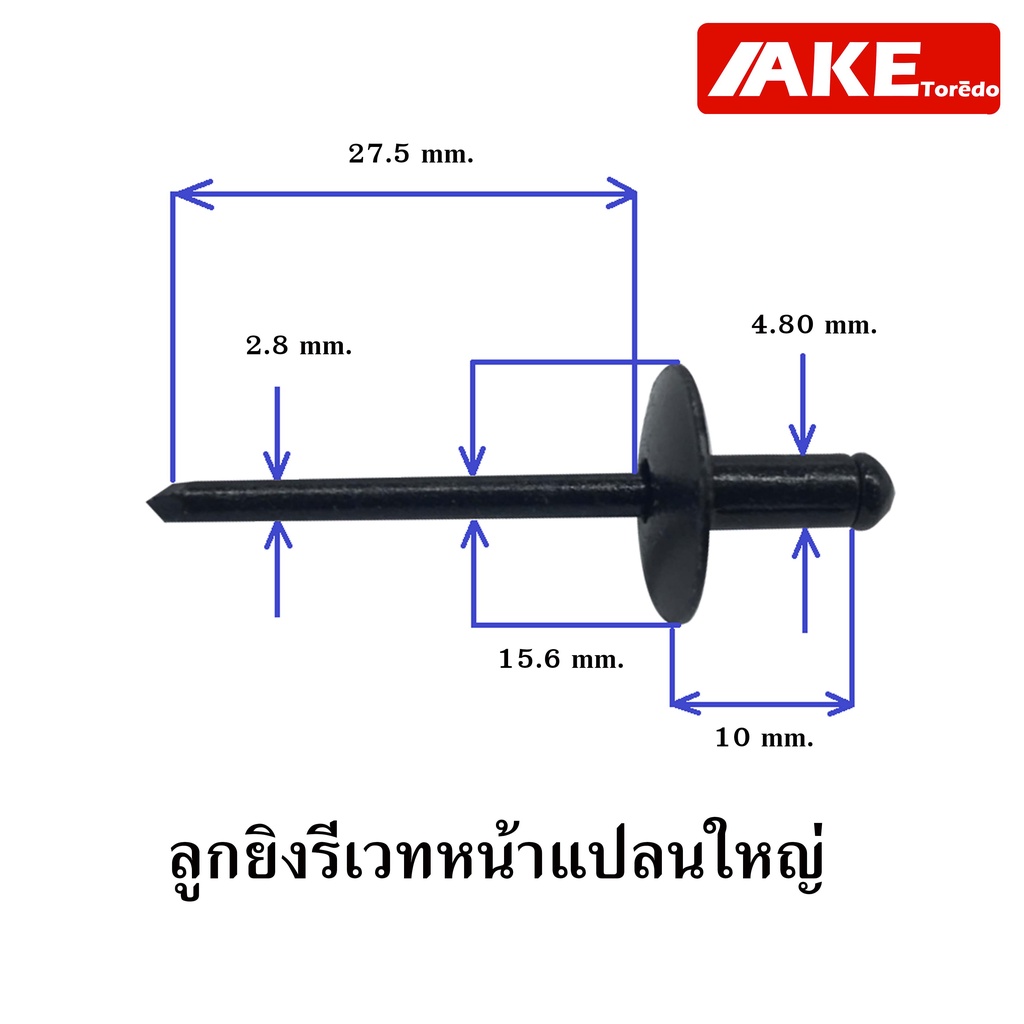 รีเวท รีเวทสีดำ ลูกยิงรีเวทหน้าแปลนใหญ่ ตะปูยิง ตะปูรีเวทเหล็ก ตะปูรีเวท ( 50ตัว ) ขนาด4.80 ตะปูยิงรีเวท ลูกรีเวท Rivet