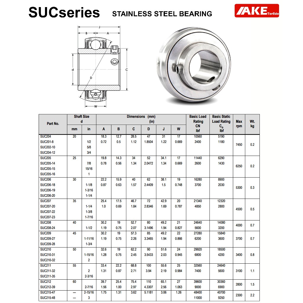 SUC203 SUC204 SUC205 SUC206 SUC207 SUC208 SUC209 SUC210 SUC211 SUC212 ตลับลูกปืนตุ๊กตาสแตนเลส STAINLESS