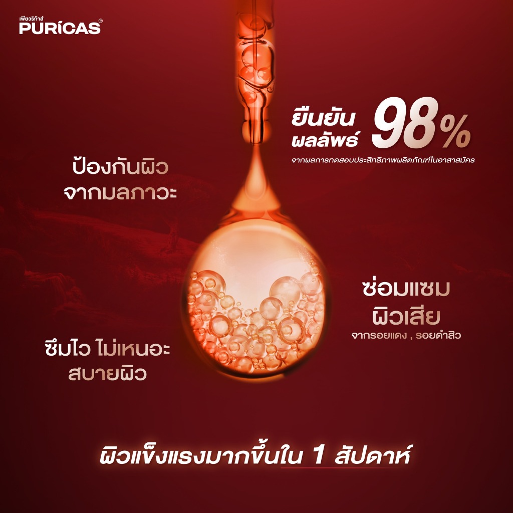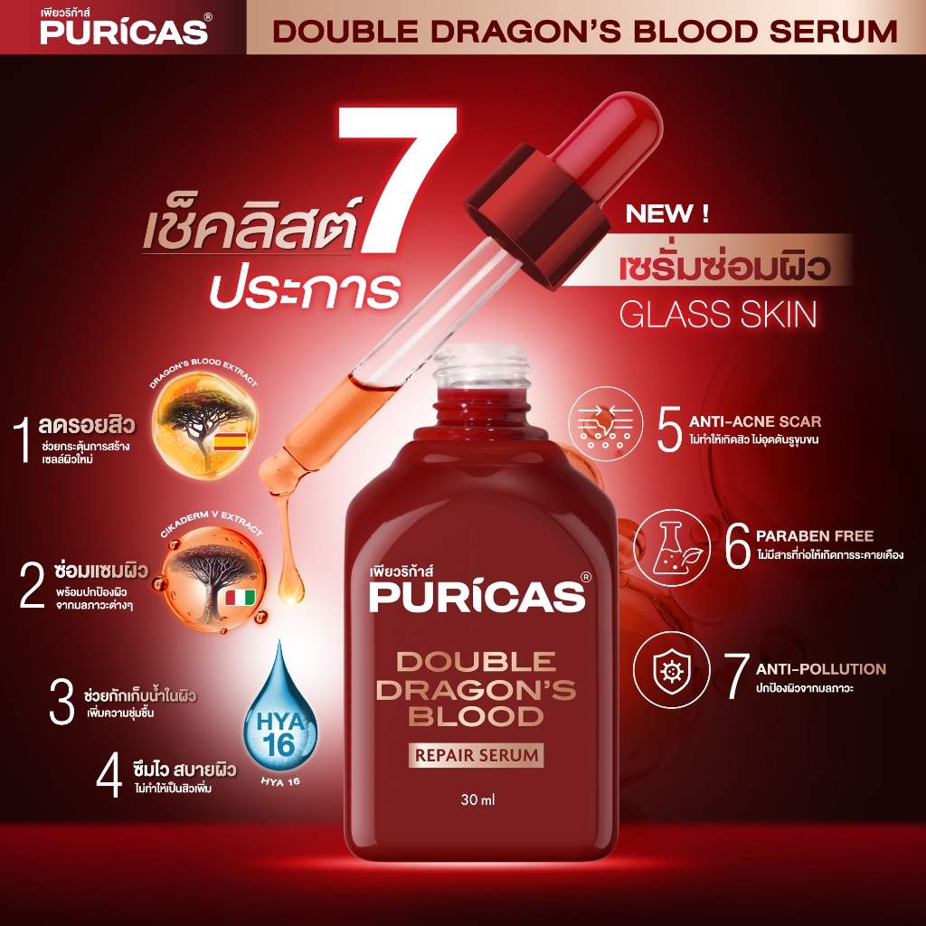 (หมดอายุ 2027) Puricas Double Dragon's Blood Repair Serum 30ml. เซรั ่มซ่อมผิว ดูแลผิวเป็นสิวและรอยสิว ลดอาการอักเสบ