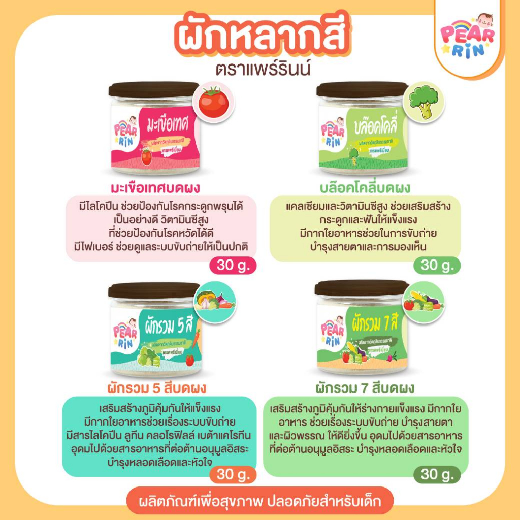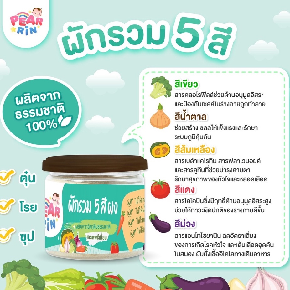 ผักบดผงรวม 5 สี PEARRIN 🌈 ตราแพร์รินน์ ขนาด 30g ผักแท้ล้วน เด็กกินง่าย! (PN_008)🔥ส่งไวมาก🔥