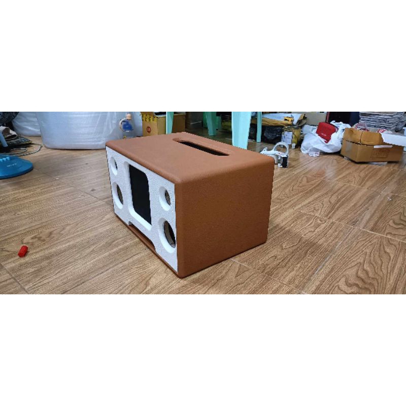 ตู้พร้อมหุ้ม+ตะแกรงหน้า(Bข้าง3.5)ขนาด24×16×15ขนาดดอก3"แหลม1.5"พาสซีฟ3.5"ช่องเพลท17×5งานตัดด้วยเครื่องcncประกอบอย่างสวยงา