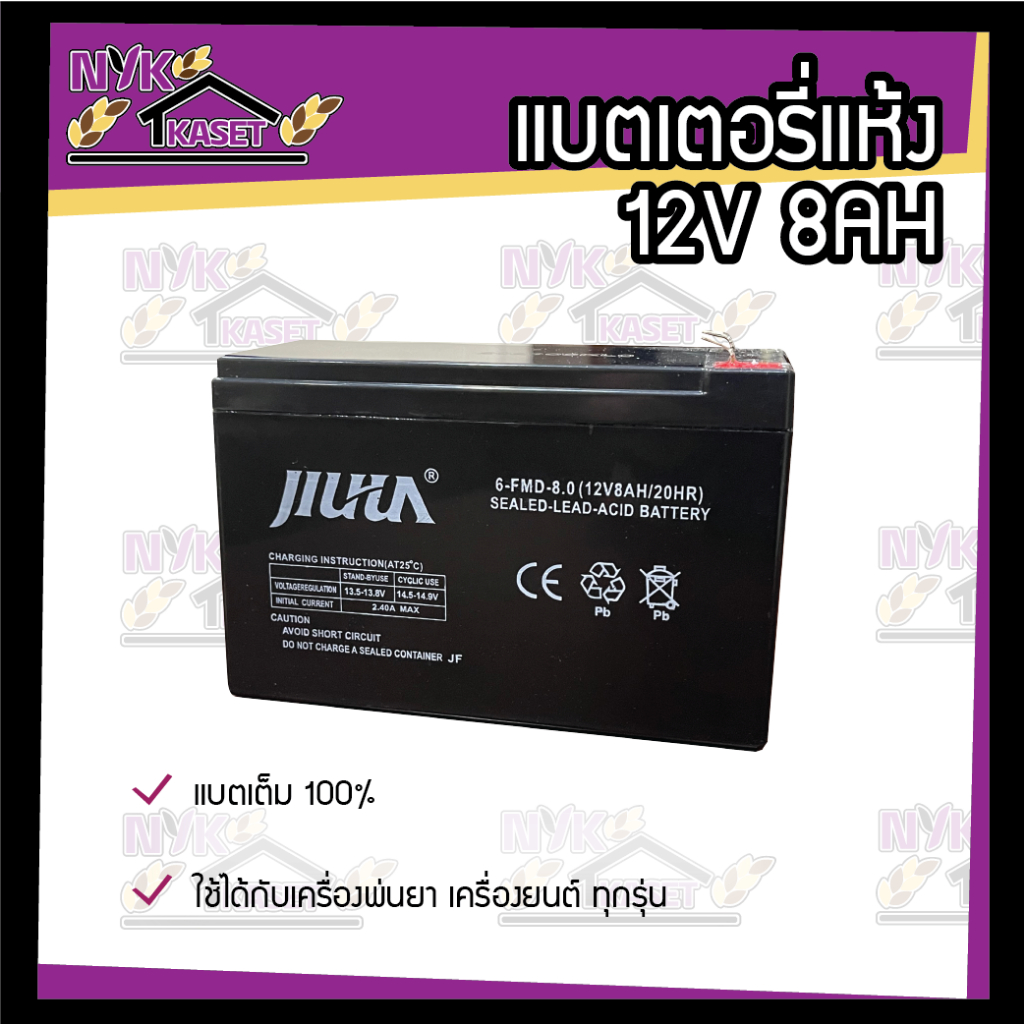 แบตเตอรี่ 12V 8AH แบตเตอรี่เครื่องสำรองไฟ แบตแห้งใหม่เต็ม100% แบตเตอรี่แห้ง (มีมอก.)(มีรับประกัน)