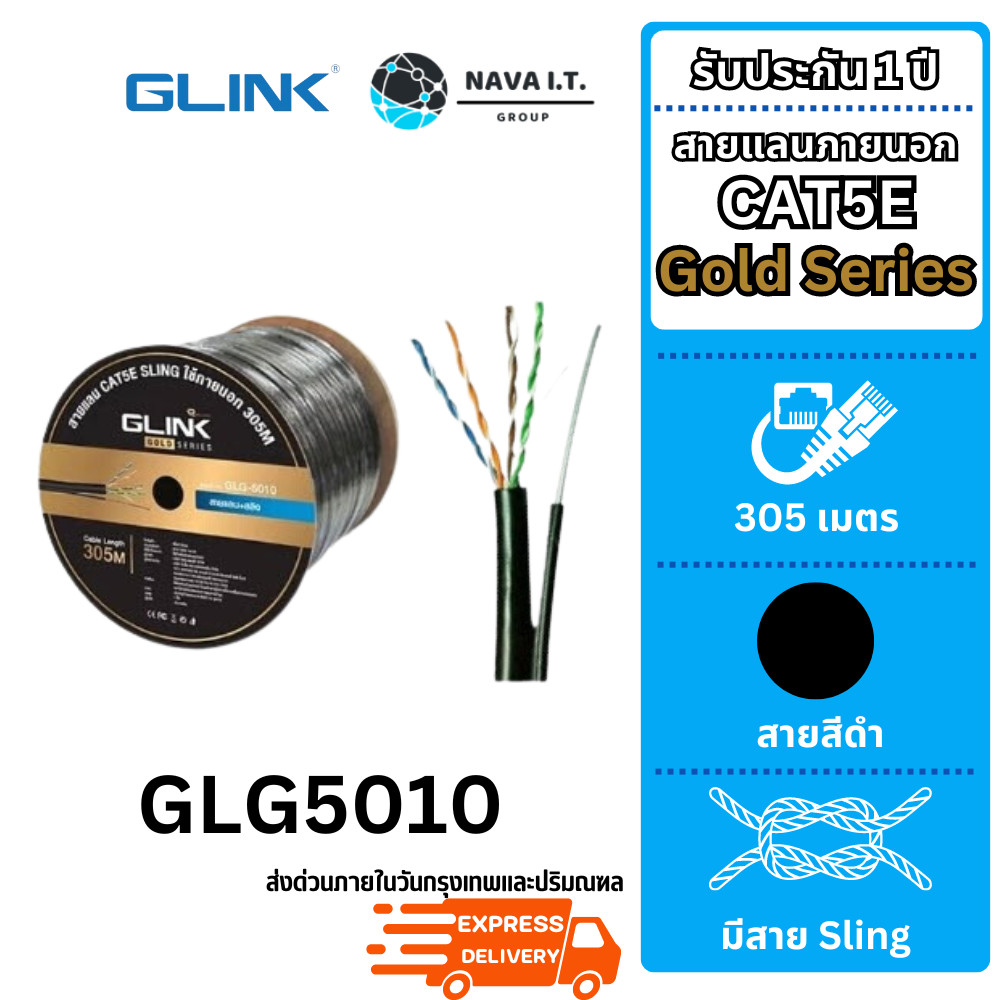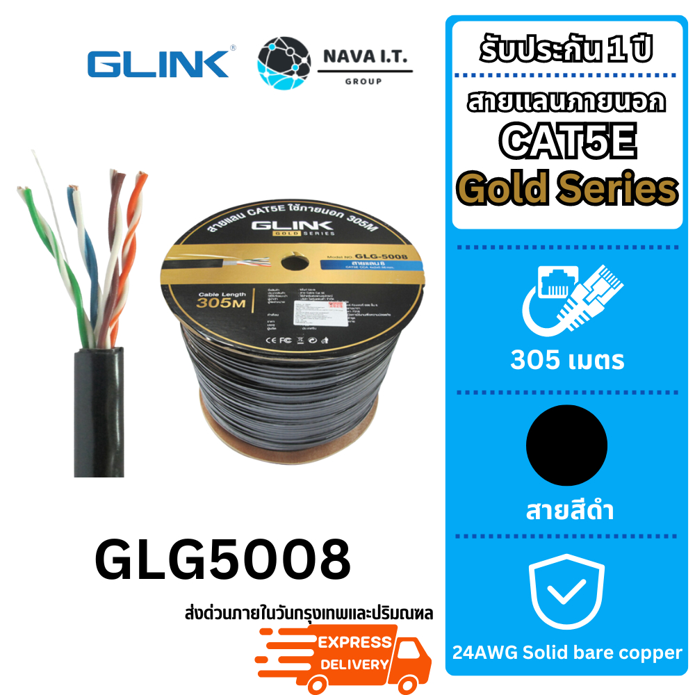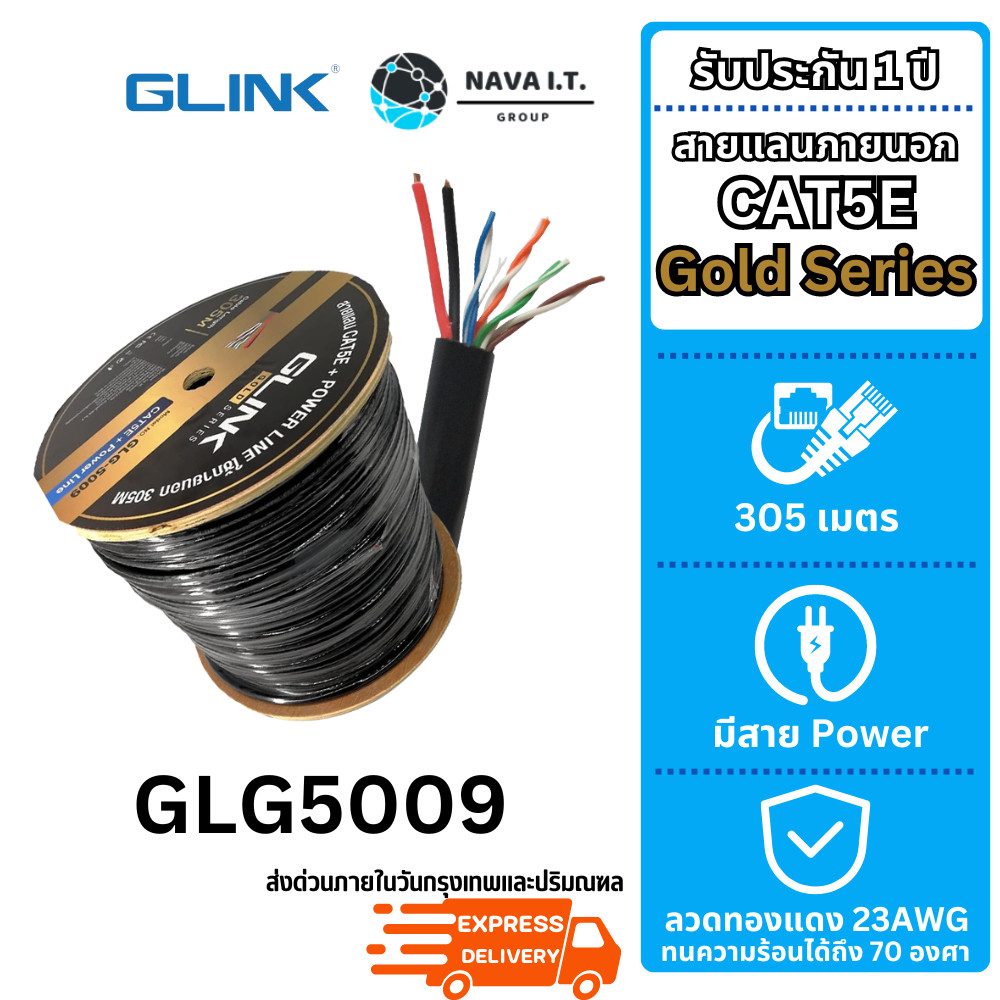 (มีส่งด่วน) รวมสายแลน GLINK GLG CABLE OUTDOOR/INDOOR/POWER/SLING CAT5E GOLD SERIES ความยาว 100/305เมตร (ไม่เข้าหัวไปให้)