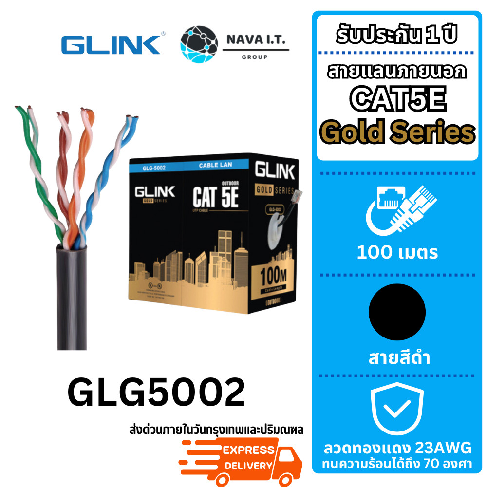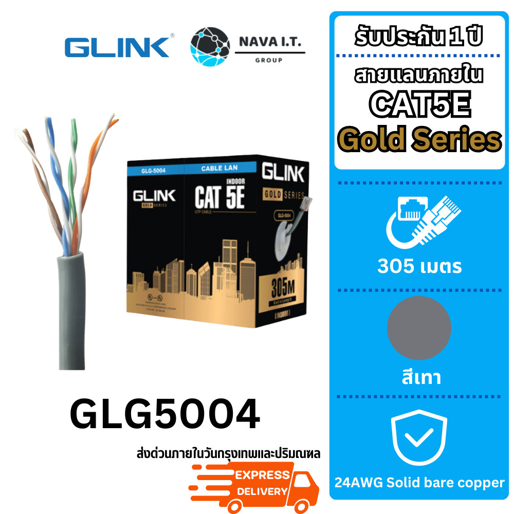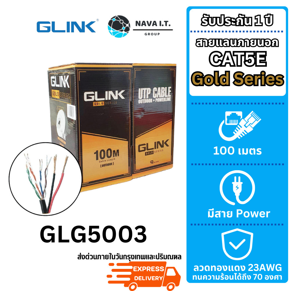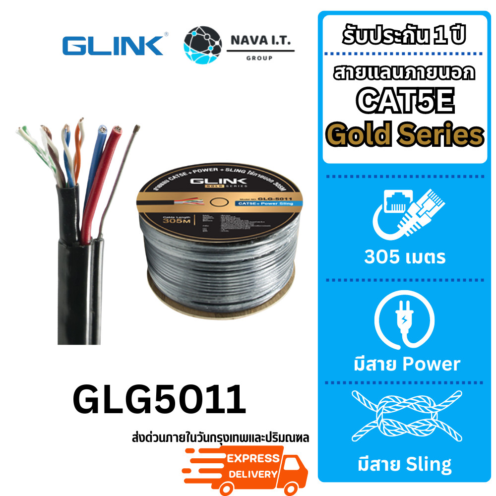 (มีส่งด่วน) รวมสายแลน GLINK GLG CABLE OUTDOOR/INDOOR/POWER/SLING CAT5E GOLD SERIES ความยาว 100/305เมตร (ไม่เข้าหัวไปให้)