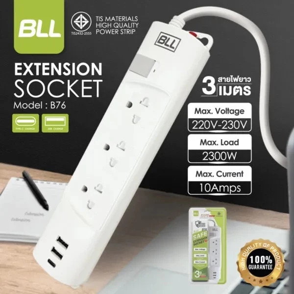 (มีส่งด่วน) BLL รวมรางปลั๊กไฟราง 3 หัว B50/WH / B53WH / B76WH / B54WH