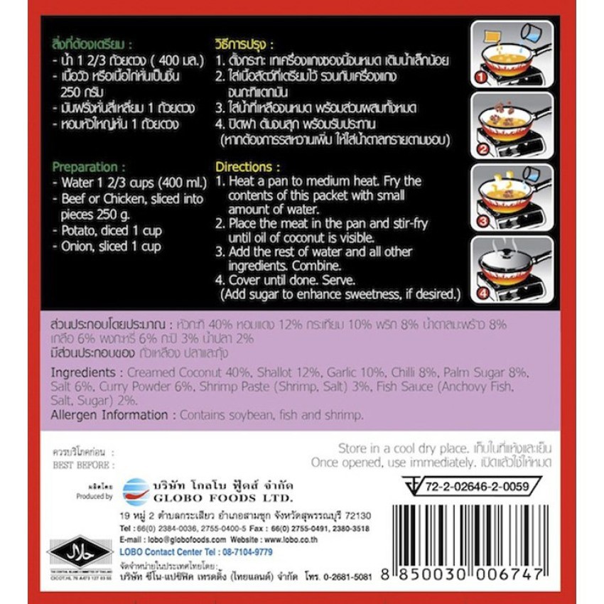 โลโบ ทูอินวัน เครื่องแกงกะหรี่ พร้อมกะทิเข้มข้น ขนาด 100 กรัม (แพ็ค 6 ซอง)