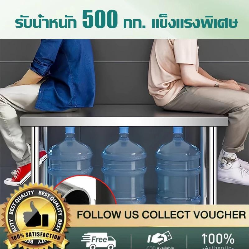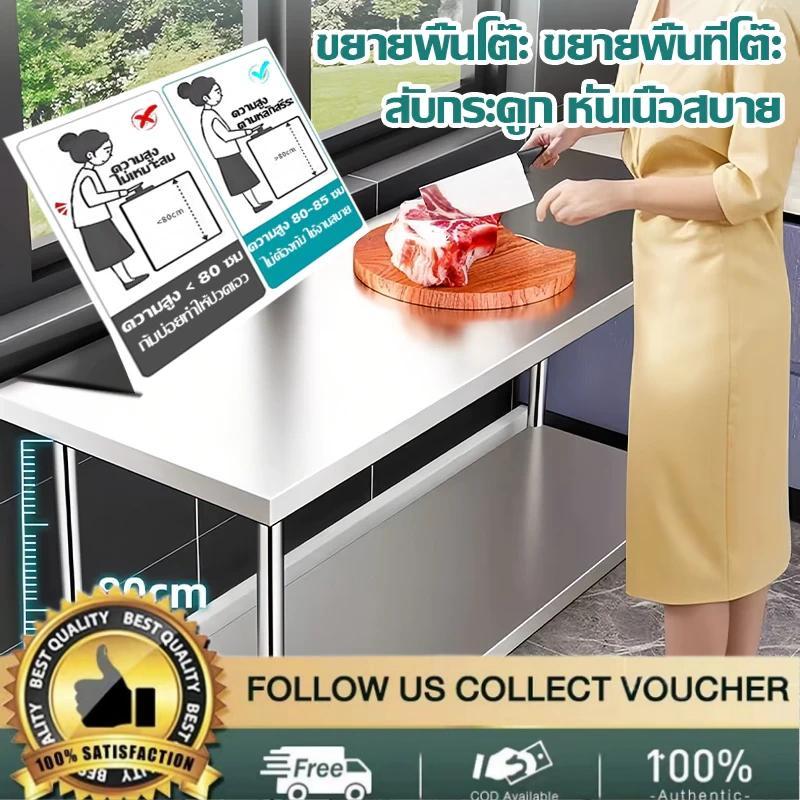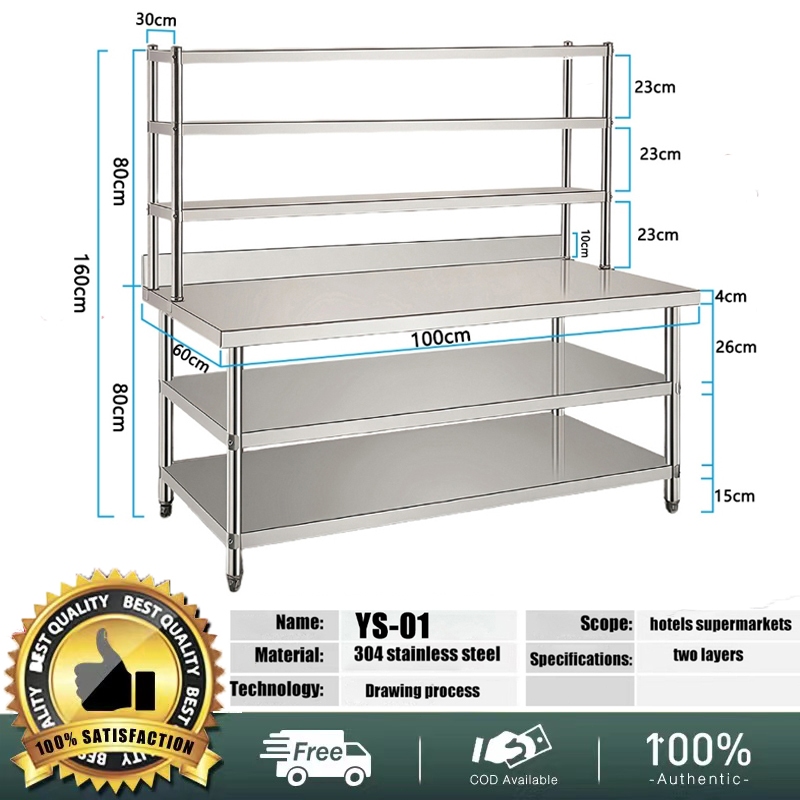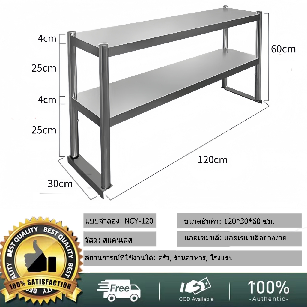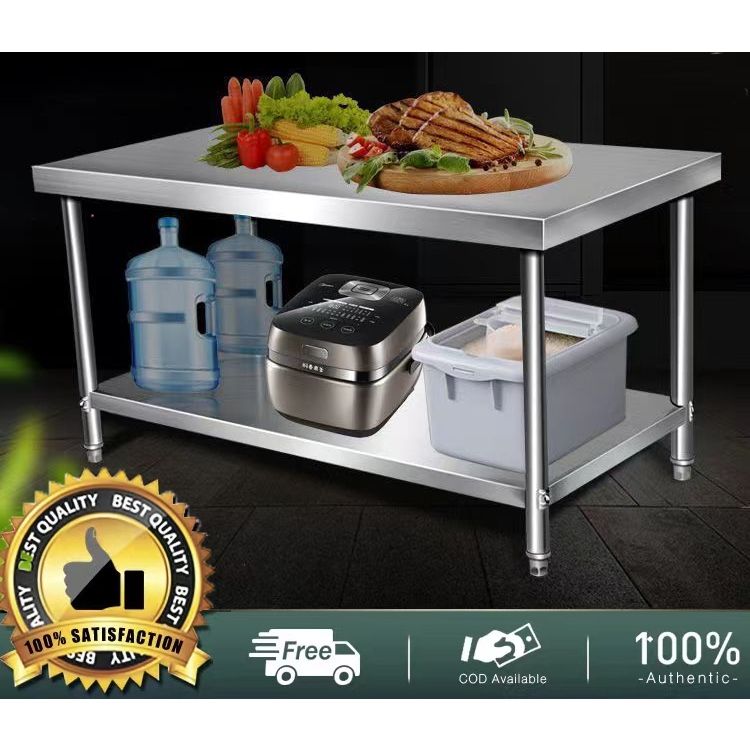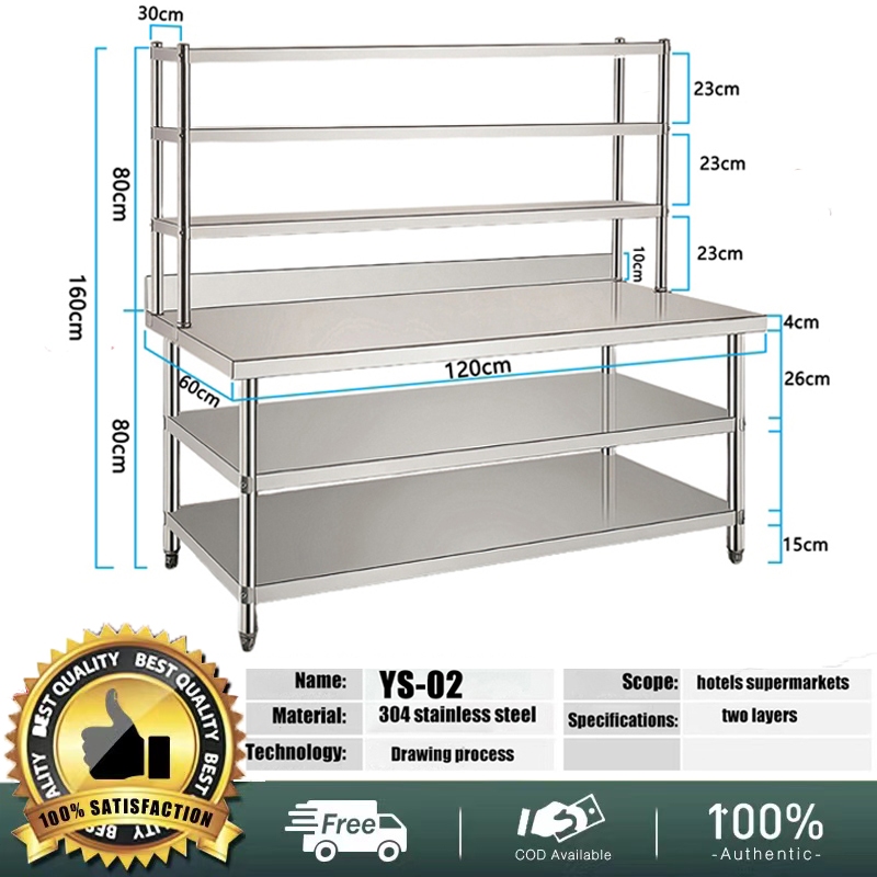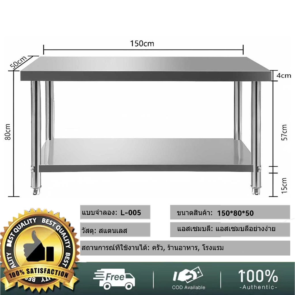 คุณภาพสูง โต๊ะทำงาน 304 stainless steel table ขอบล้อม ทำความสะอาดง่าย โต๊ะสองชั้น โต๊ะ 120CM×50CM×80CM โต๊ะสแตนเลส