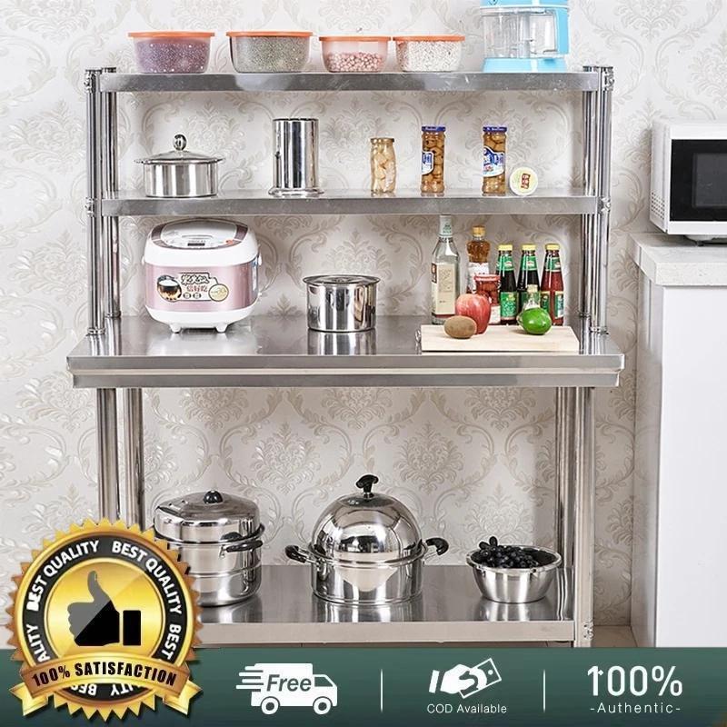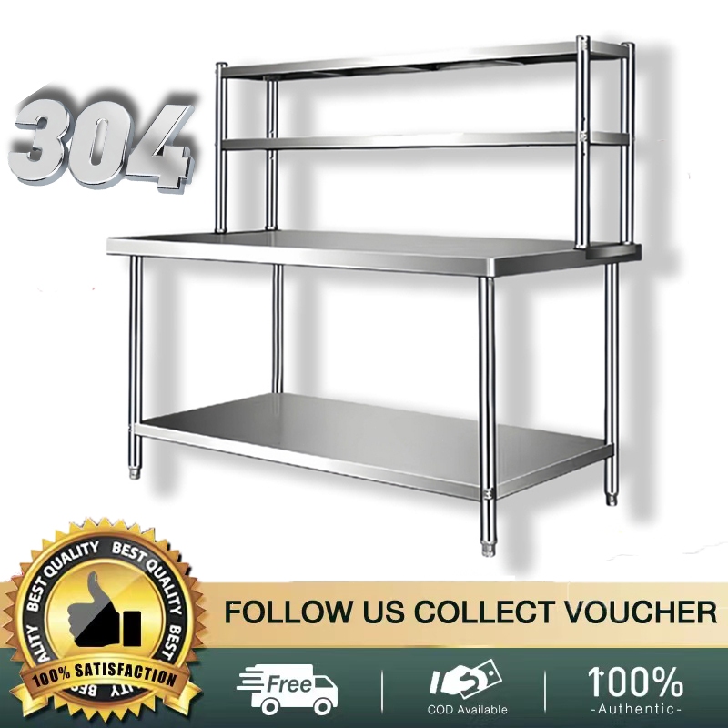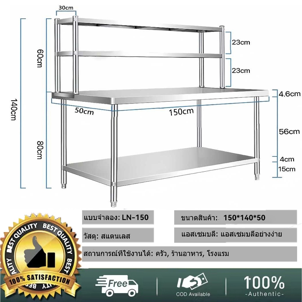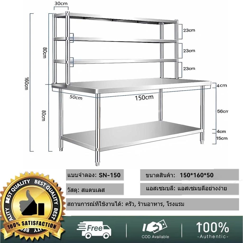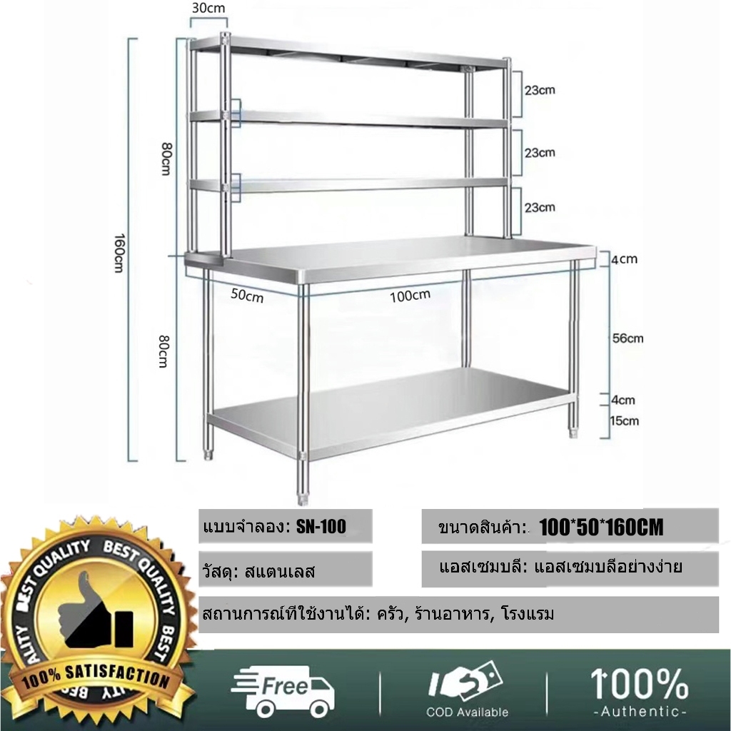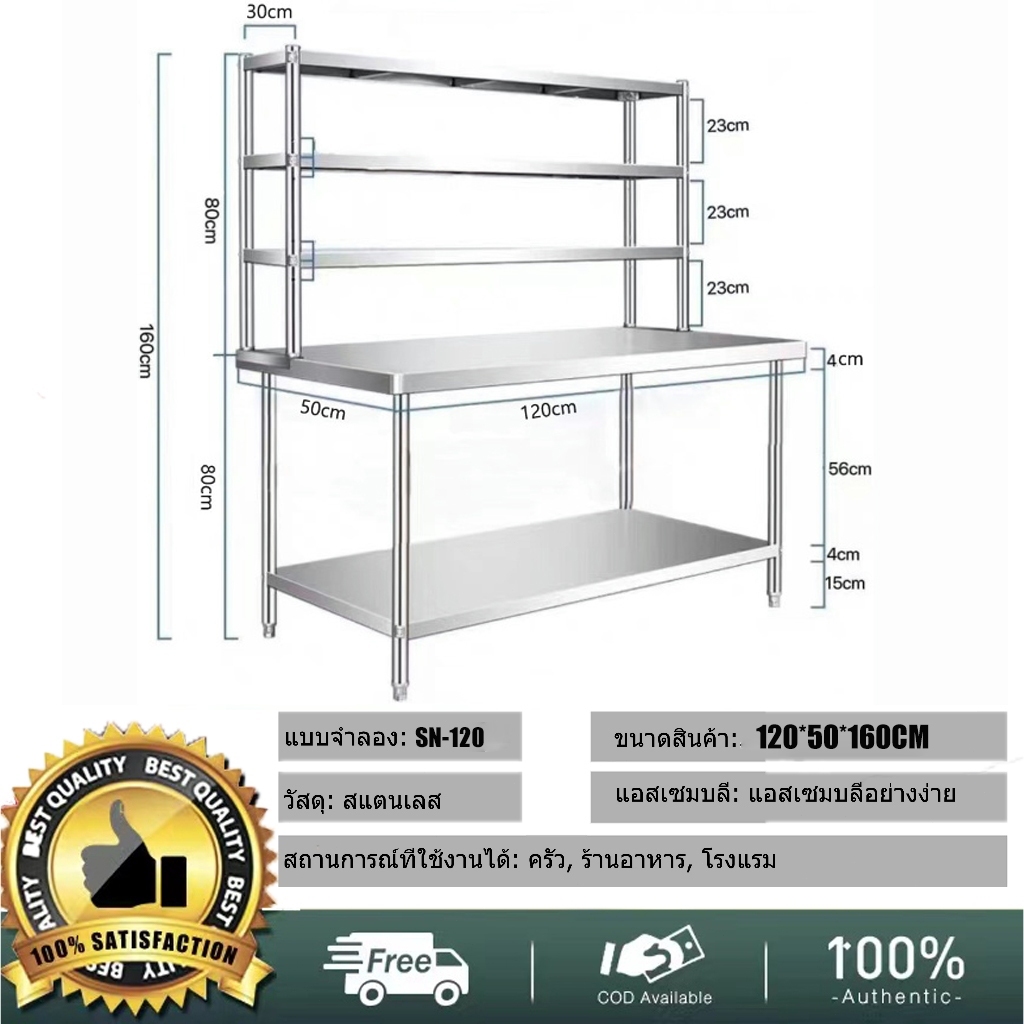 304 stainless steel table ขอบล้อม 120CM×50CM×80CM โต๊ะสแตนเลส คุณภาพสูง โต๊ะทำงาน ทำความสะอาดง่าย โต๊ะสองชั้น โต๊ะ New