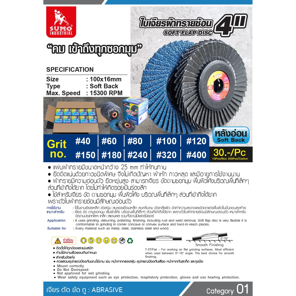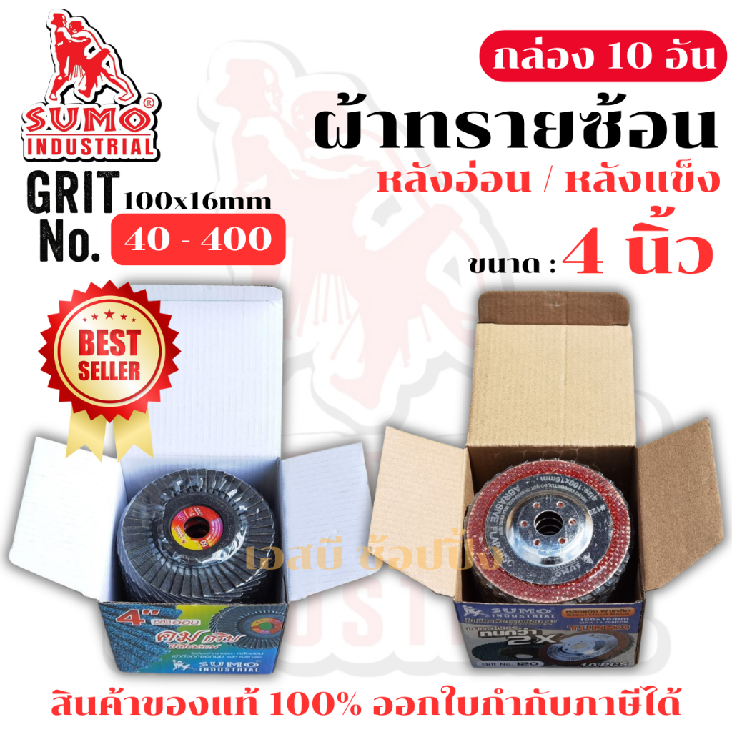 กระดาษทรายซ้อน SUMO ใบเจียรผ้าทรายซ้อน ซูโม่ 4นิ้ว (หลังอ่อน/หลังแข็ง) ***ยกกล่อง 10อัน***