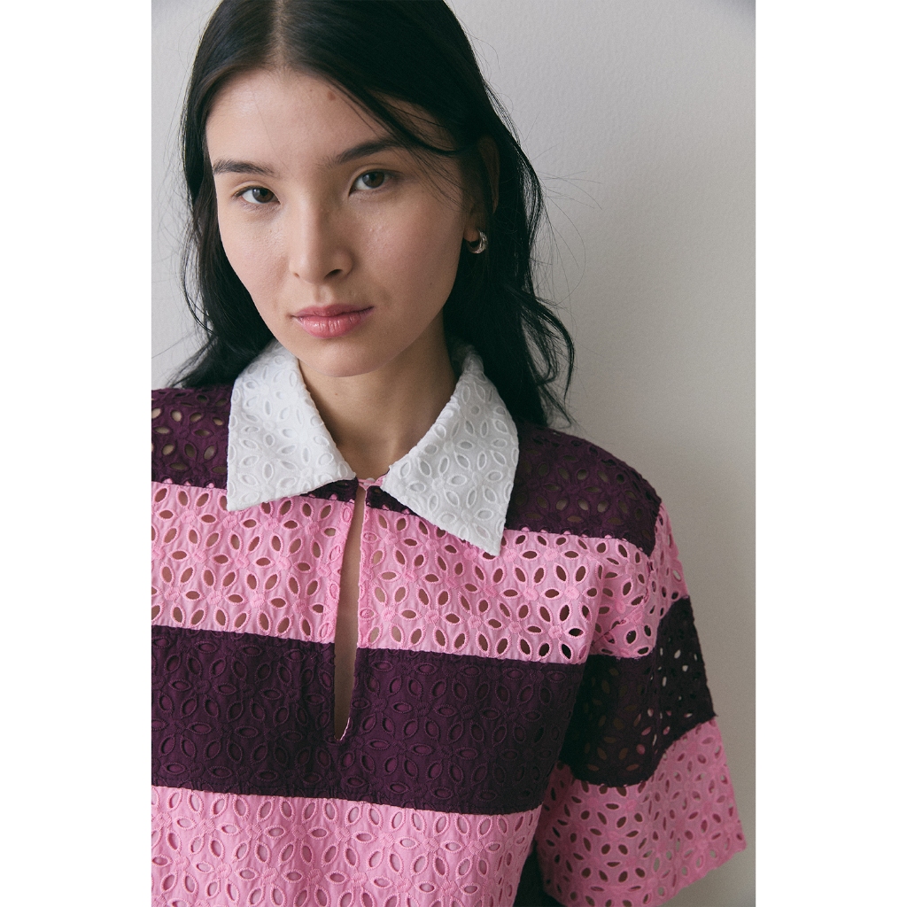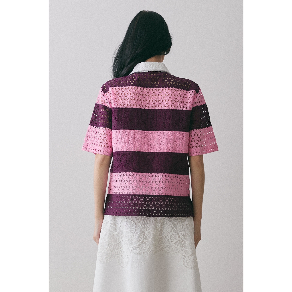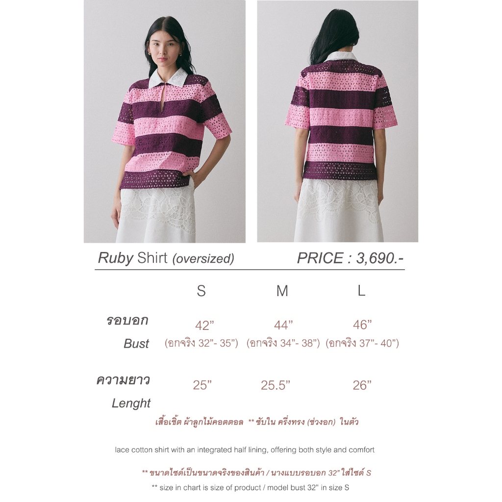 (สินค้าใหม่ !! พร้อมส่ง ) Perana เสื้อเชิ้ต ผ้าลูกไม้คอตตอล Ruby Shirt ( Pink )
