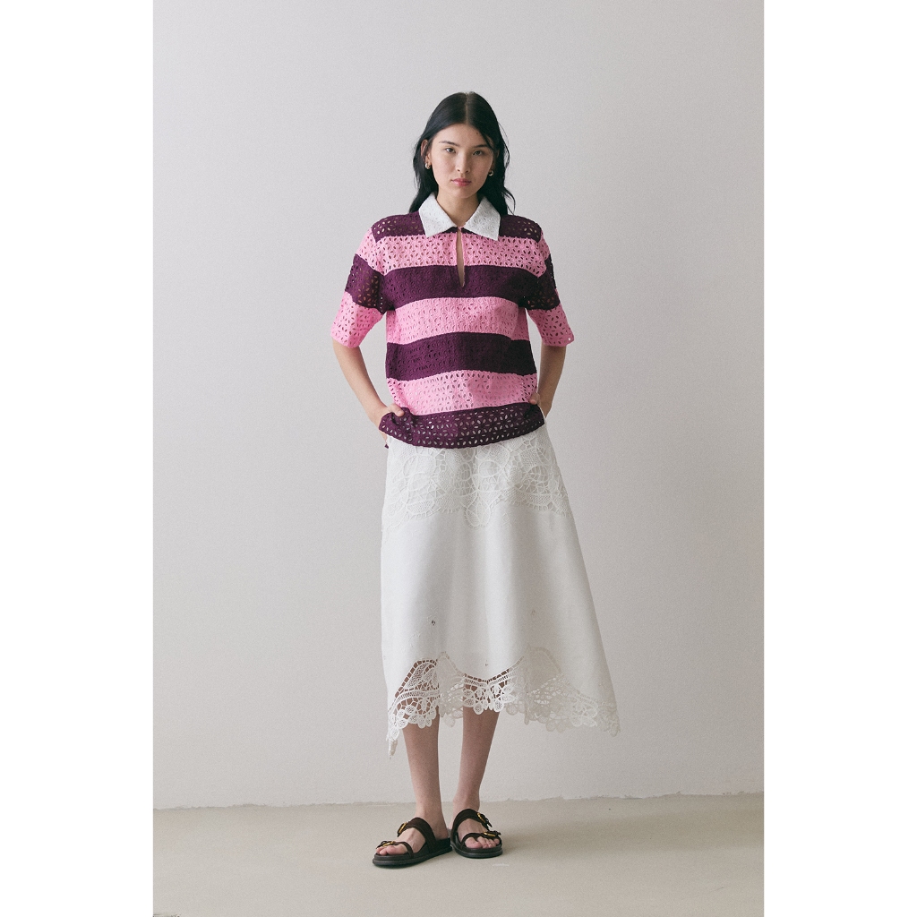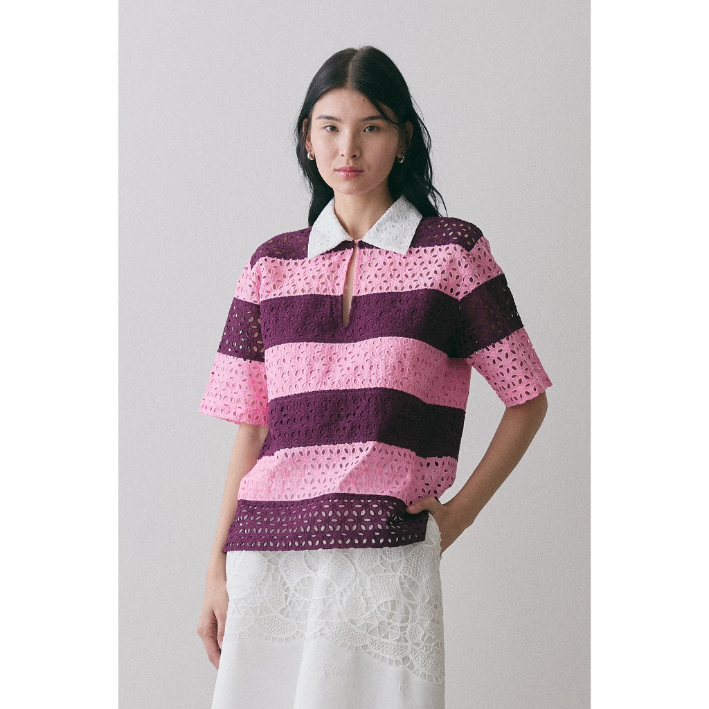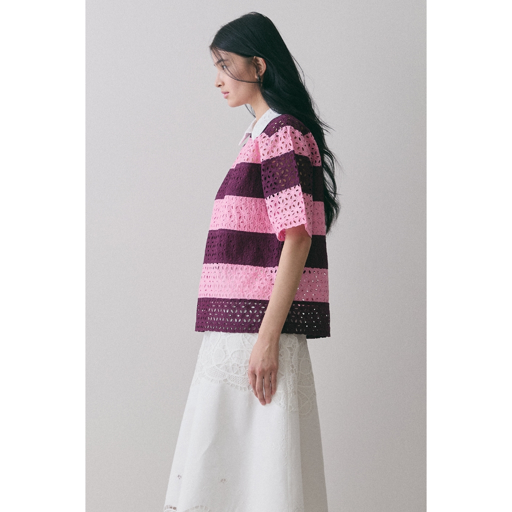 (สินค้าใหม่ !! พร้อมส่ง ) Perana เสื้อเชิ้ต ผ้าลูกไม้คอตตอล Ruby Shirt ( Pink )