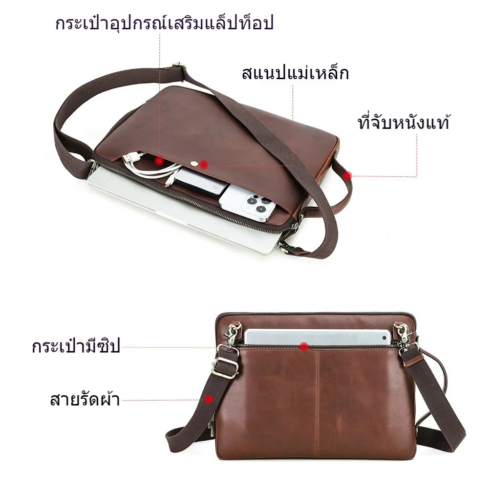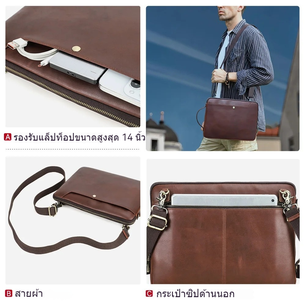 CONTACTS FAMILY กระเป๋าแล็ปท็อป หนังวัวแท้ พร้อมสายสะพายไหล่ ถอดออกได้ สไตล์วินเทจ สําหรับ Pro 14 Air 13 แล็ปท็อป