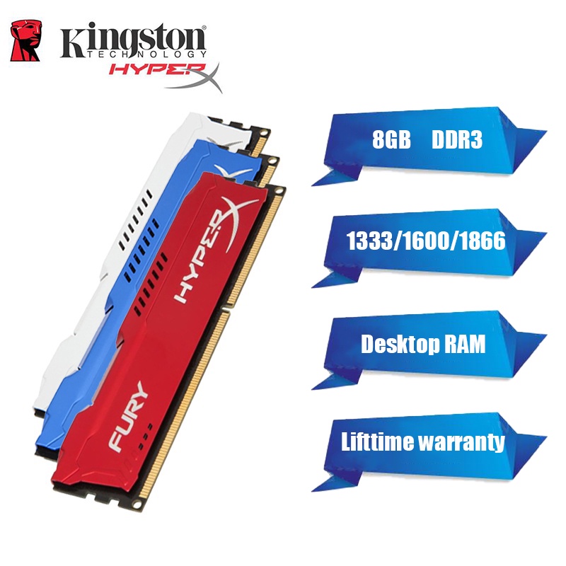 kingston 8GB DDR3/3L 1600MHz 1866Mhz PC3-12800/14900 หน่วยความจำเดสก์ท็อป Kingston HyperX 240Pin 1.35V 1.5V DDR1 DDR2 DDR3 หน่วยความจำเดสก์ท็อป PC ram Heat Sink Cooler