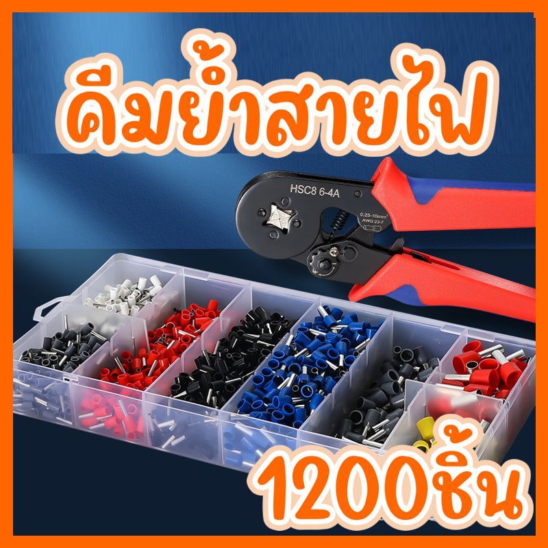 คีมเข้าหัวสายไฟ พร้อมหัว 1200 ชิ้น HSC8 6-4A TUBULAR Terminal CRIMPING