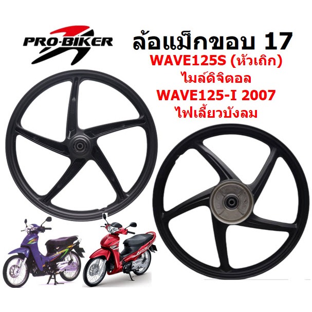 ล้อแม็ก WAVE125S(หัวเถิก) ไมล์ดิจิตอล ไม่มีสายไมล์ & WAVE125-I บังลม 5ก้านลายเดิม สีดำ PROBIKER